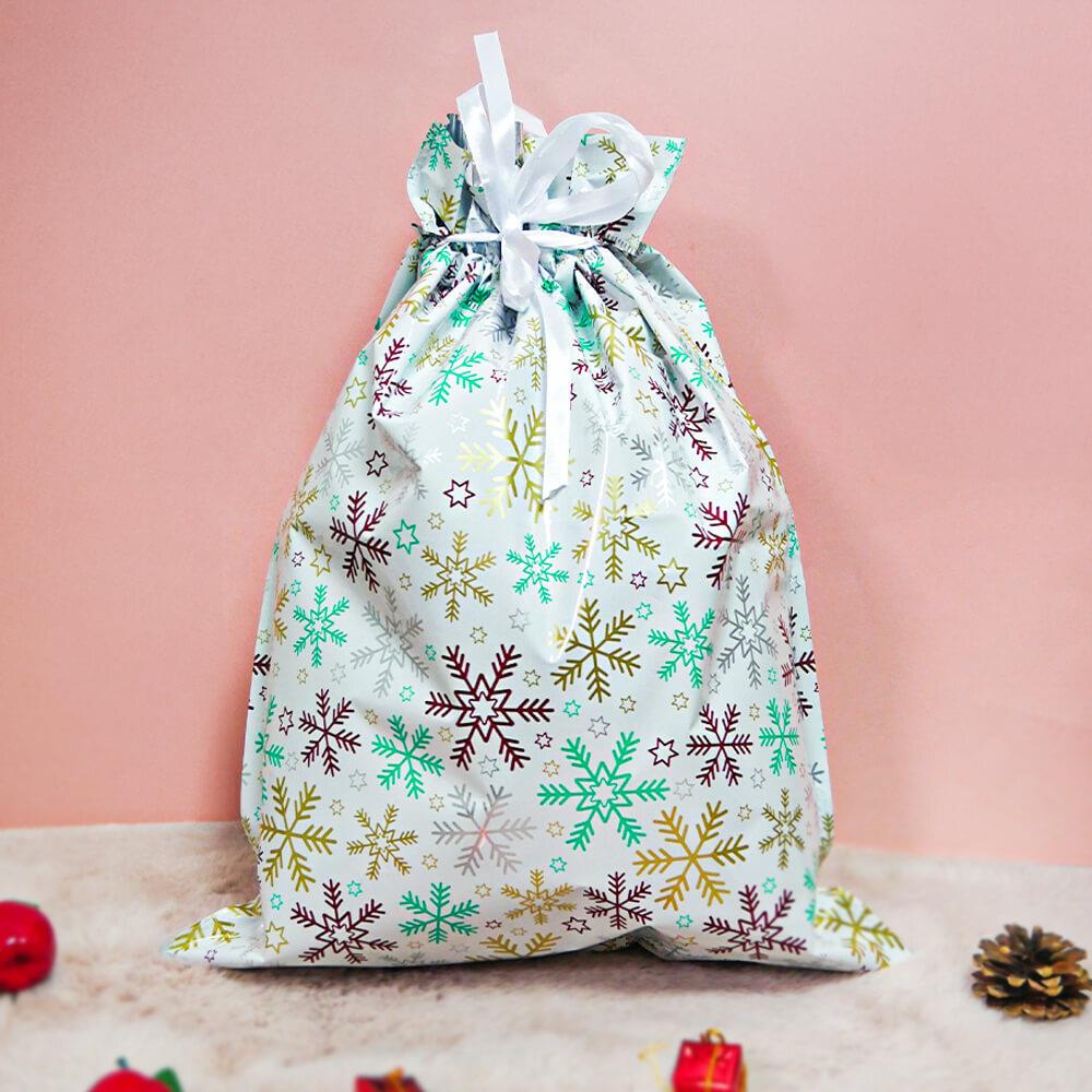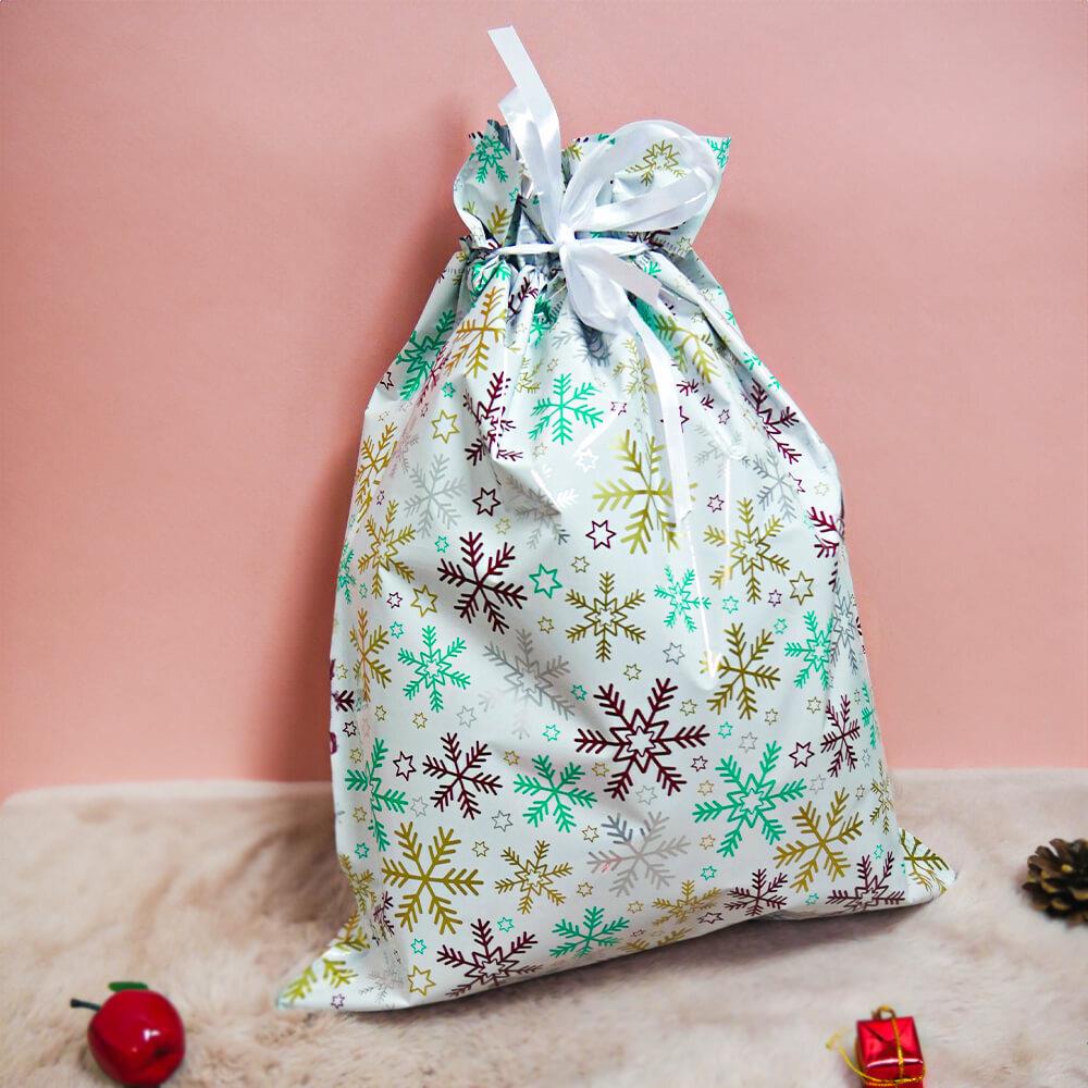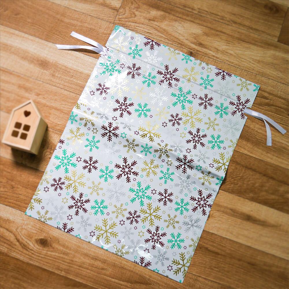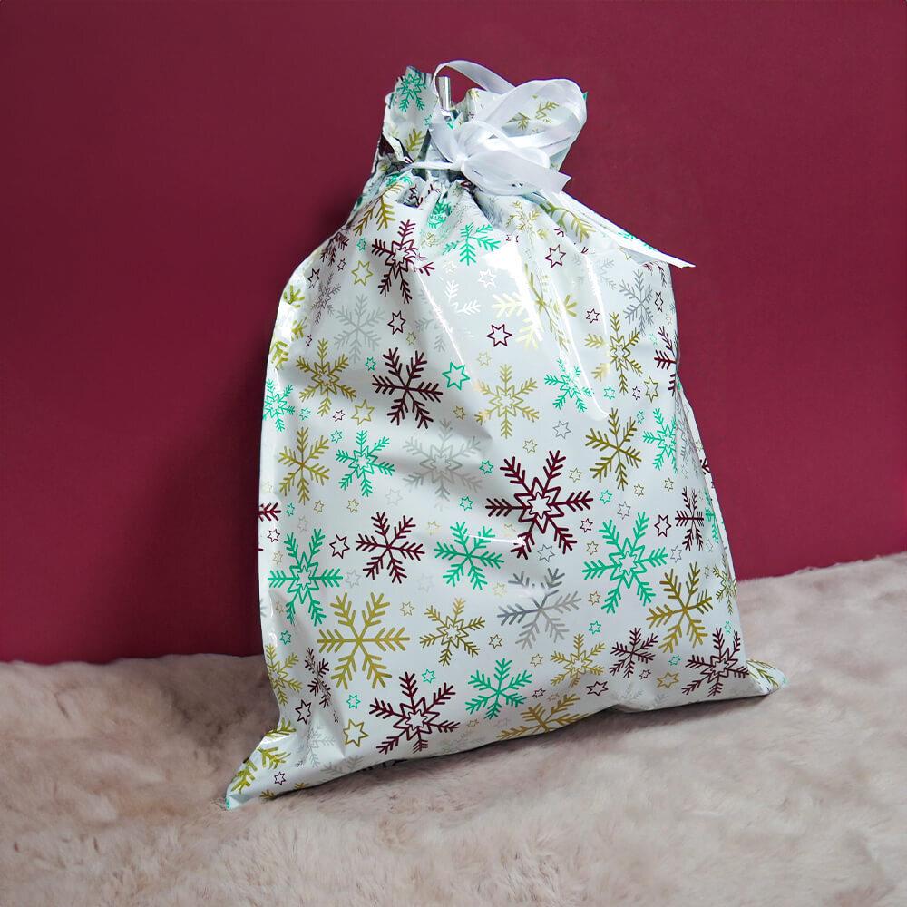Kép valamiből Karácsonyi ajándékcsomagoló táska madzaggal - 51x39 cm - hópehelyek
