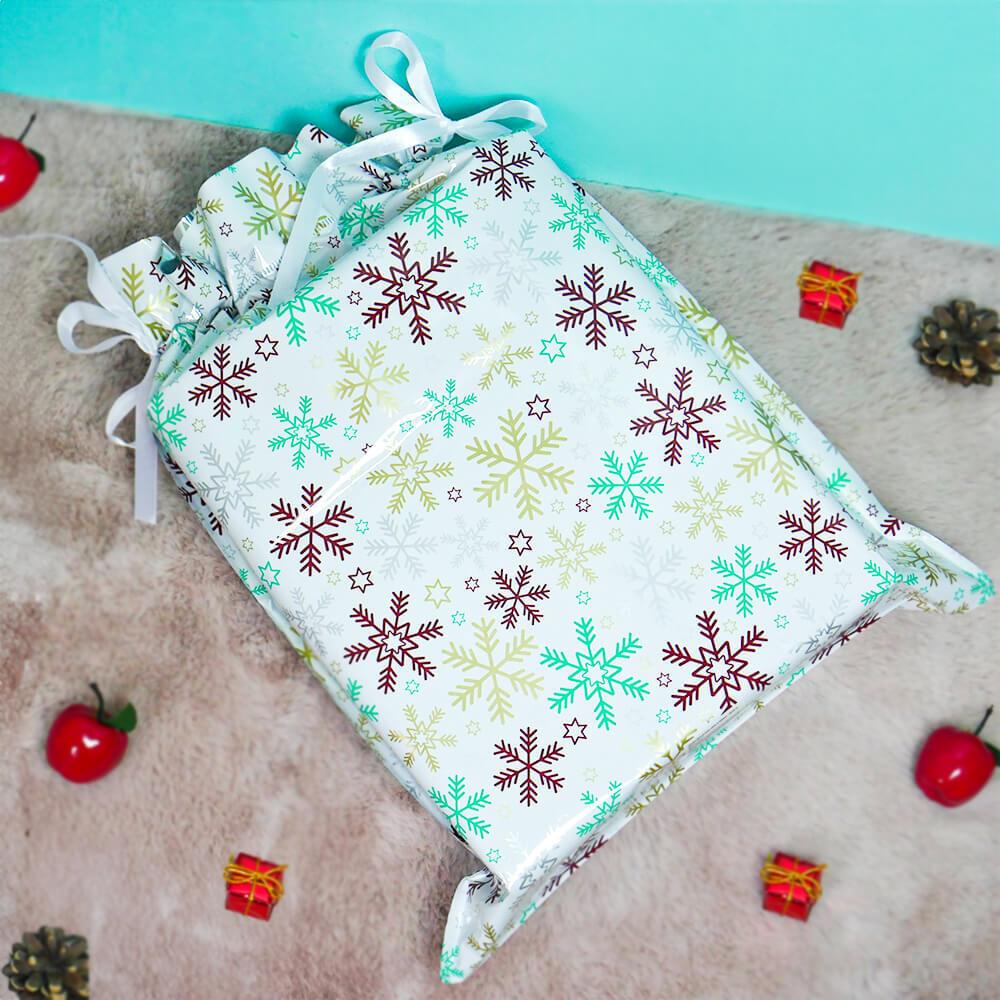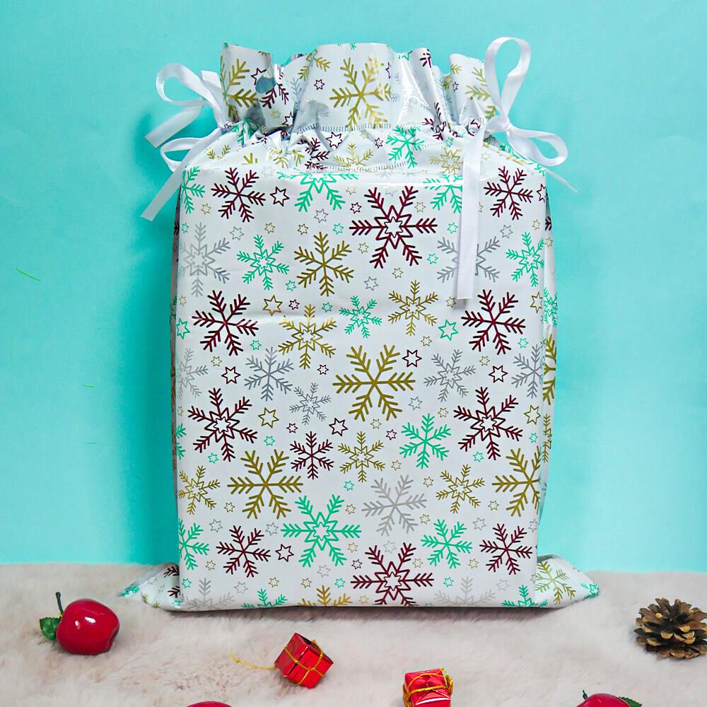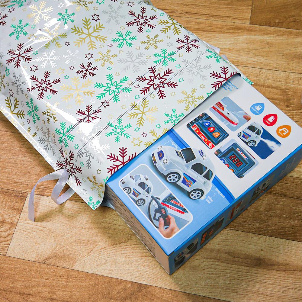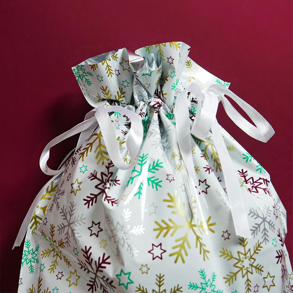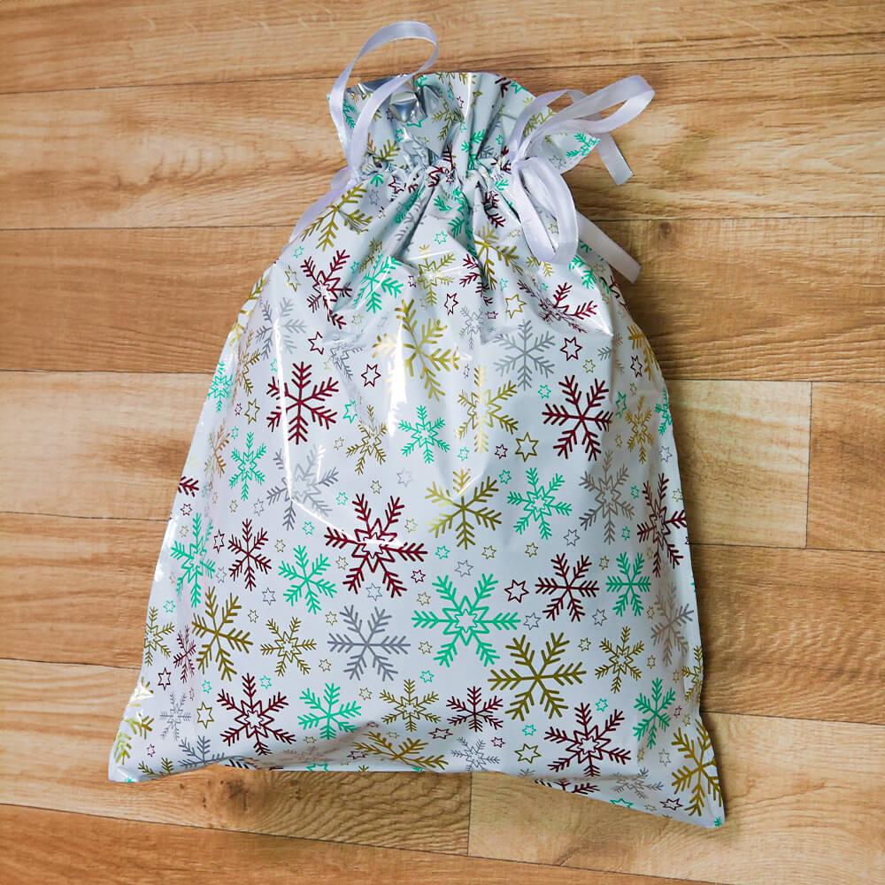 Kép valamiből Karácsonyi ajándékcsomagoló táska madzaggal - 51x39 cm - hópehelyek