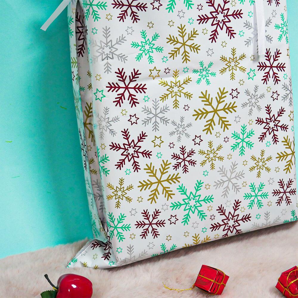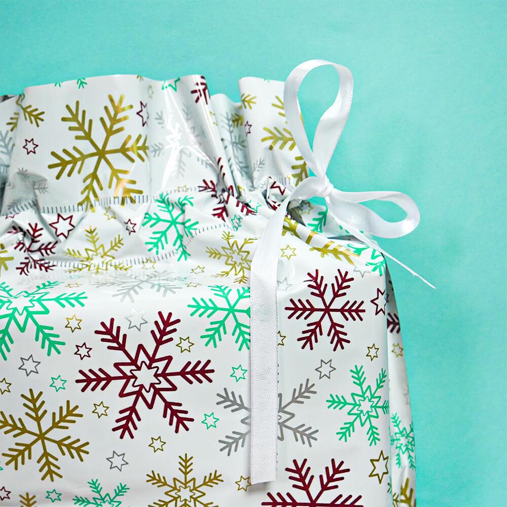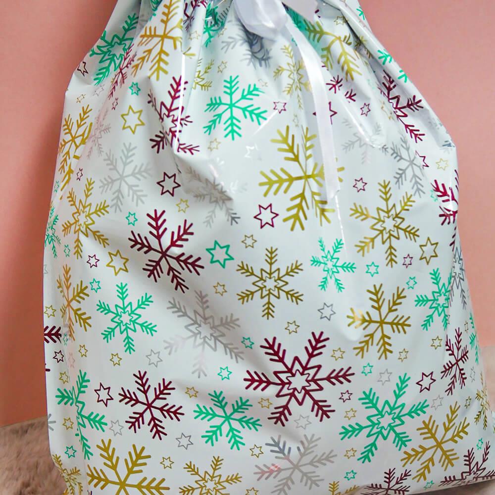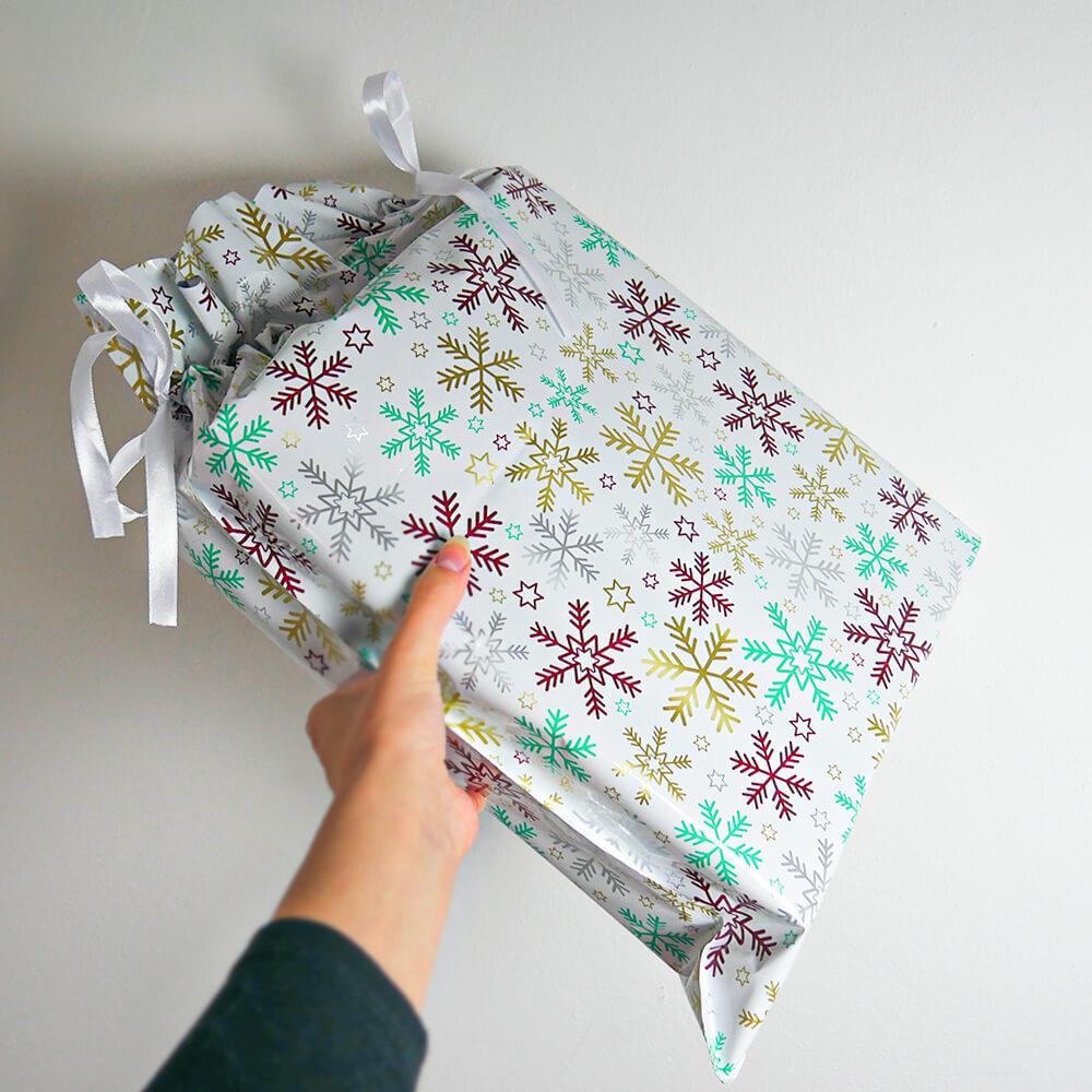 Kép valamiből Karácsonyi ajándékcsomagoló táska madzaggal - 51x39 cm - hópehelyek