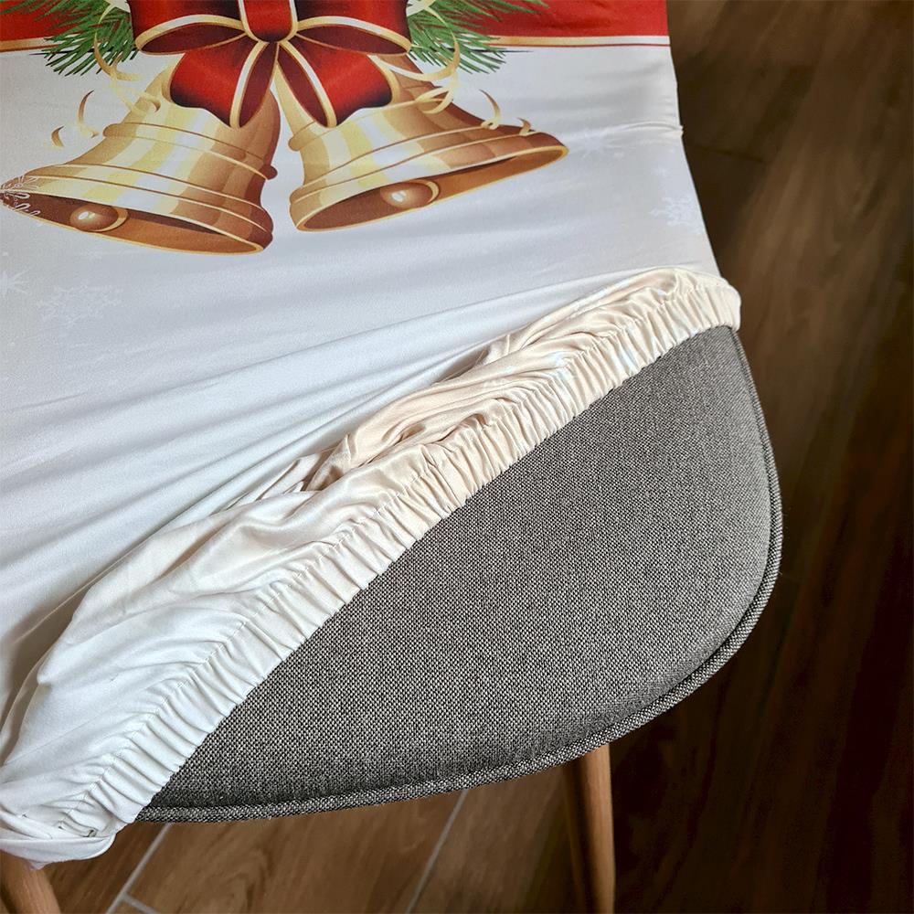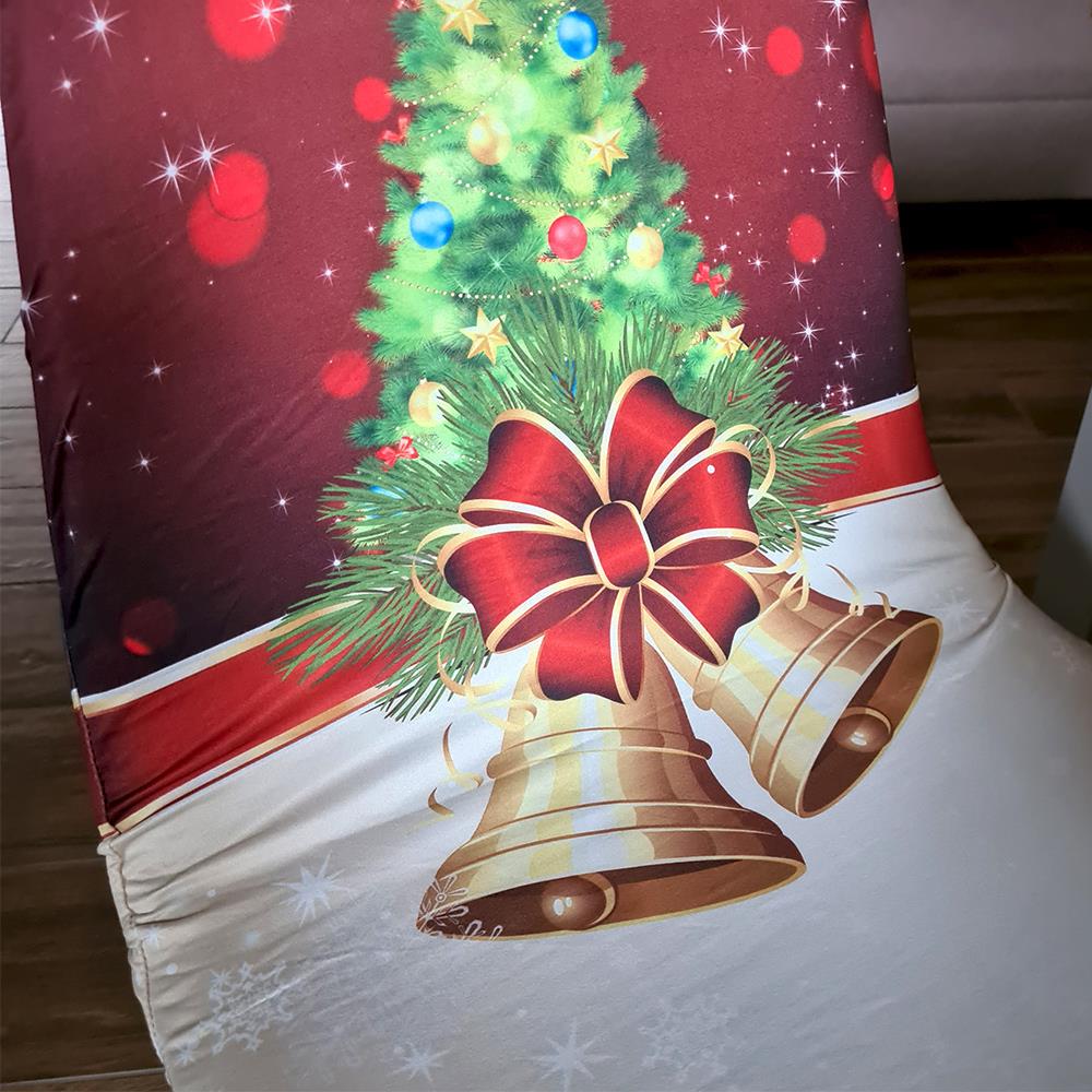 Karácsonyi motívumú székborítás - karácsonyfa harangokkal