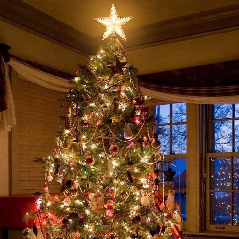 Karácsonyi világító csillag a karácsonyfára - meleg fény