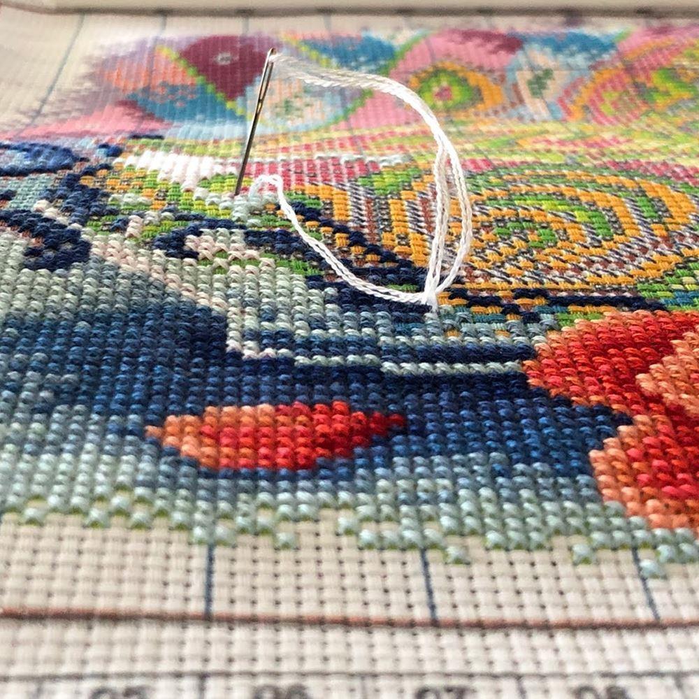 A csomag előre nyomtatott mintát tartalmaz textilen, hímzőfonalakat és tűkészletet. A minta útmutatója alapján kiválasztod a megfelelő fonalat, és egyszerű keresztszemes öltéssel felvarrod a kívánt helyre. Az ábrás kézikönyv tanácsadóként segít, ha elakadnál. A hímzőkészlet nem gyerekjáték, de a gyerekek részben bekapcsolódhatnak a kreatív tevékenységbe veled együtt.
