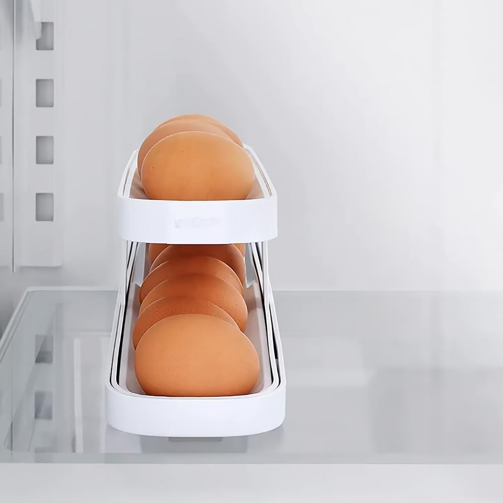 Ez a tojástartó úgy lett tervezve, hogy hatékonyan kihasználja a hűtőszekrényben lévő helyet, miközben könnyű hozzáférést biztosít a tojásokhoz anélkül, hogy azok eltörnének. Két emeletes kialakítása lehetővé teszi legalább egy tucat tojás tárolását.