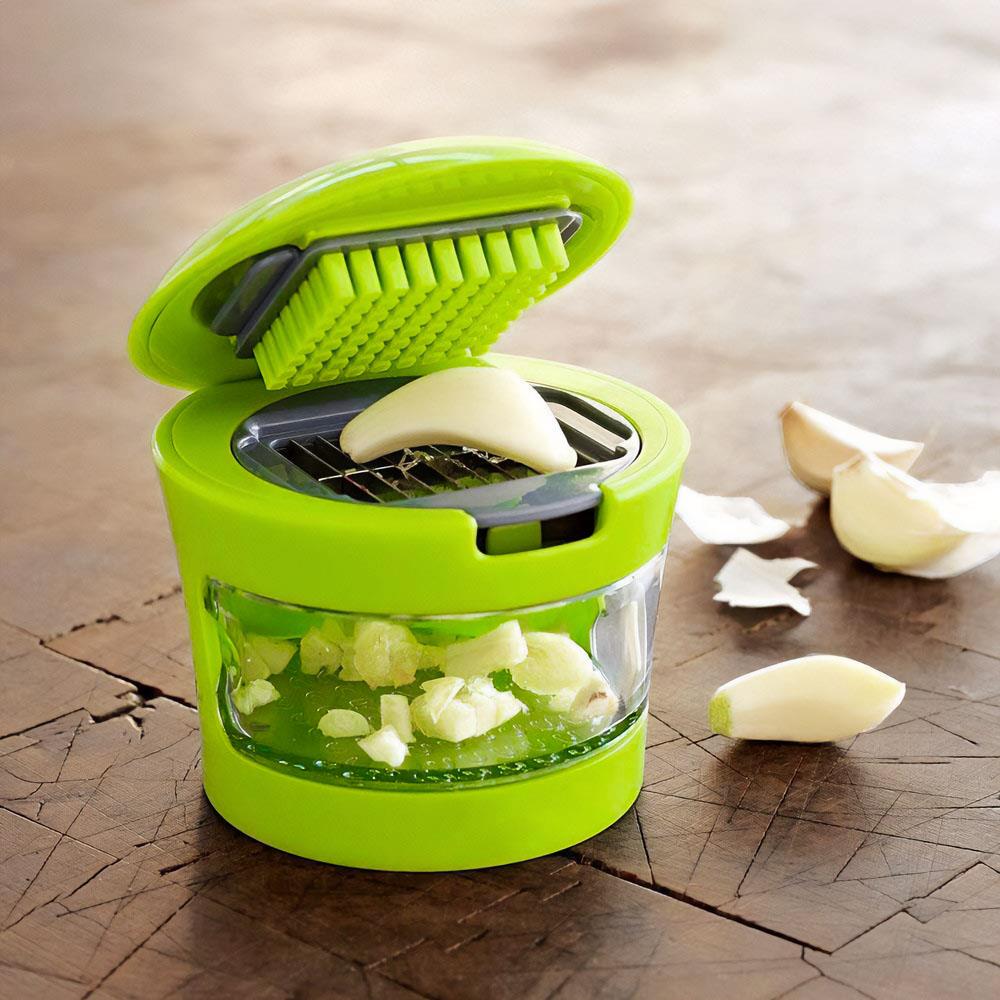 Ez a munka tiszta kézzel történik, és ráadásul a használata rendkívül egyszerű! Csak helyezzen be egy tartozékot a kijelölt fedélbe, és helyezze rá a meghámozott fokhagyma gerezdeket. Ezután nyomja le a fedelet, és a műanyag edénybe a fokhagyma kockák vagy szeletek hullanak! Milyen egyszerű, és milyen hatékony!