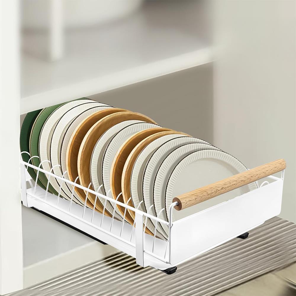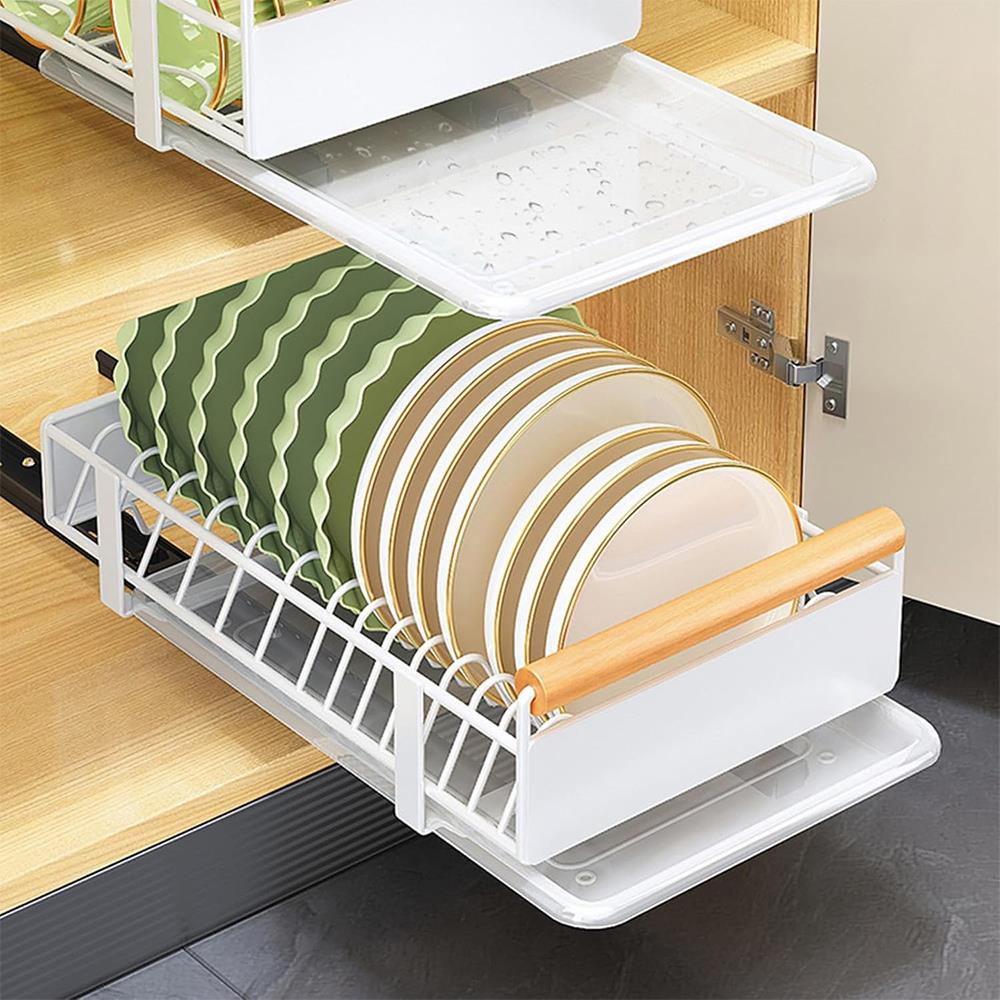 Vigyen rendet és stílust konyhájába ezzel az okos, kihúzható tányérrendezővel és csepegtetővel! Átgondolt kialakításának, masszív fém szerkezetének és elegáns fa fogantyúinak köszönhetően edényei mindig tökéletesen rendszerezve és könnyen elérhetőek lesznek. A praktikus, kihúzható konstrukció helyet takarít meg, és egyszerű kezelést tesz lehetővé kisebb konyhákban is.