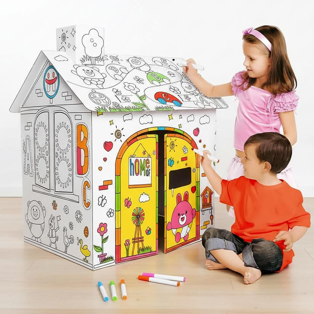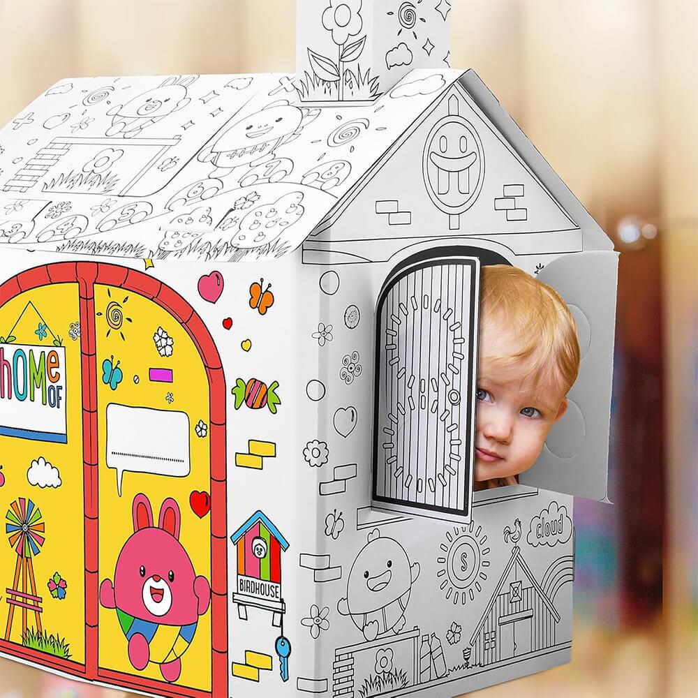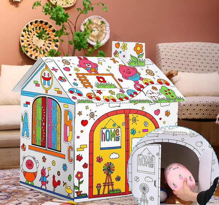 Kép valamiből Kiszínezhető gyermek házikó filctollakkal, 60,5 x 48 x 70 cm