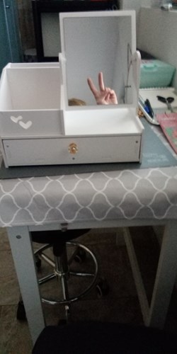 A sminktároló tükörrel ideális megoldás minden nő számára, aki szeretné a kozmetikai termékeit áttekinthetően rendezni és mindig kéznél tudni. Ez az elegáns és praktikus kiegészítő segít rendet tartani az asztalon, és időt takarít meg a mindennapi szépségápolás során. Az átgondolt kialakításának köszönhetően minden kedvenc termékét elérheti, legyen szó rúzsokról, ecsetekről, szemhéjfestékekről vagy krémekről.