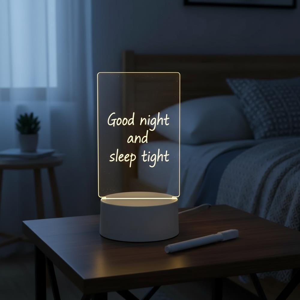 Jó reggelt, jó éjszakát, ne felejtsd el ezt vagy azt – amikor a háztartásban nagy a pörgés, gyakran támaszkodunk apró üzenetekre, hogy információkat adjunk át szeretteinknek, akiket a sok teendő mellett néha akarva-akaratlanul is elhanyagolunk. Az egyszerű cetlik vagy a hűtőre ragasztott feliratok azonban nemcsak hogy időnként eltűnnek, de biztosan nincs olyan varázsuk, mint ennek az eredeti asztali lámpának, amely fényének ragyogásával továbbítja az üzenetedet, és még örömet is okoz. Remekül mutat majd az éjjeliszekrényen, ha vele kívánsz szép álmokat, de akár az íróasztalon is, hogy többé ne felejts el fontos feladatokat. Fogd a mellékelt filcet, és írd le mindazt, ami a szíveden van. Amint a lámpa felkapcsol, az információ eljut ahhoz, akinek szánod, és ha válaszra van szükség, egy kendővel egyszerűen letörölhető a régi szöveg, és átírható egy új üzenetre. A lámpával így olyan társat kapsz, akivel nemcsak mondanivalód lehet, de üzeneted sem vész el – sem fizikailag, sem a címzett fejéből.