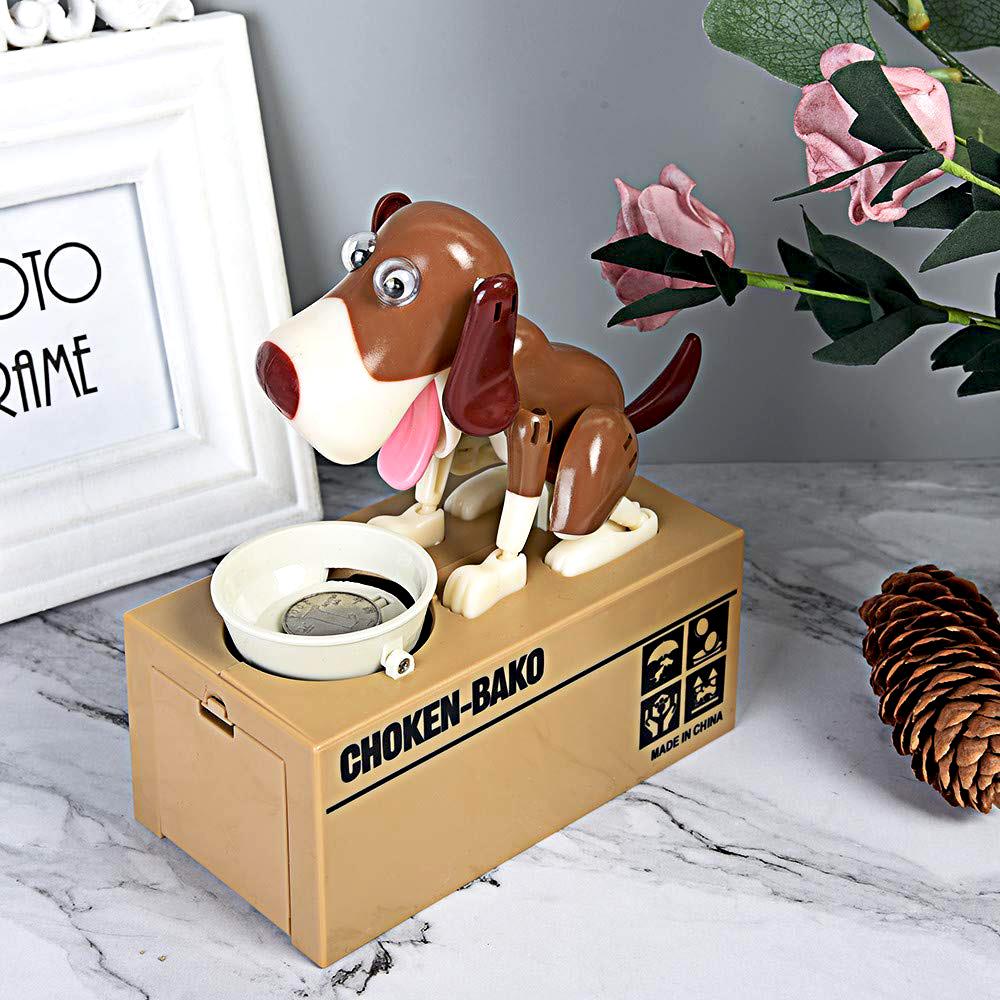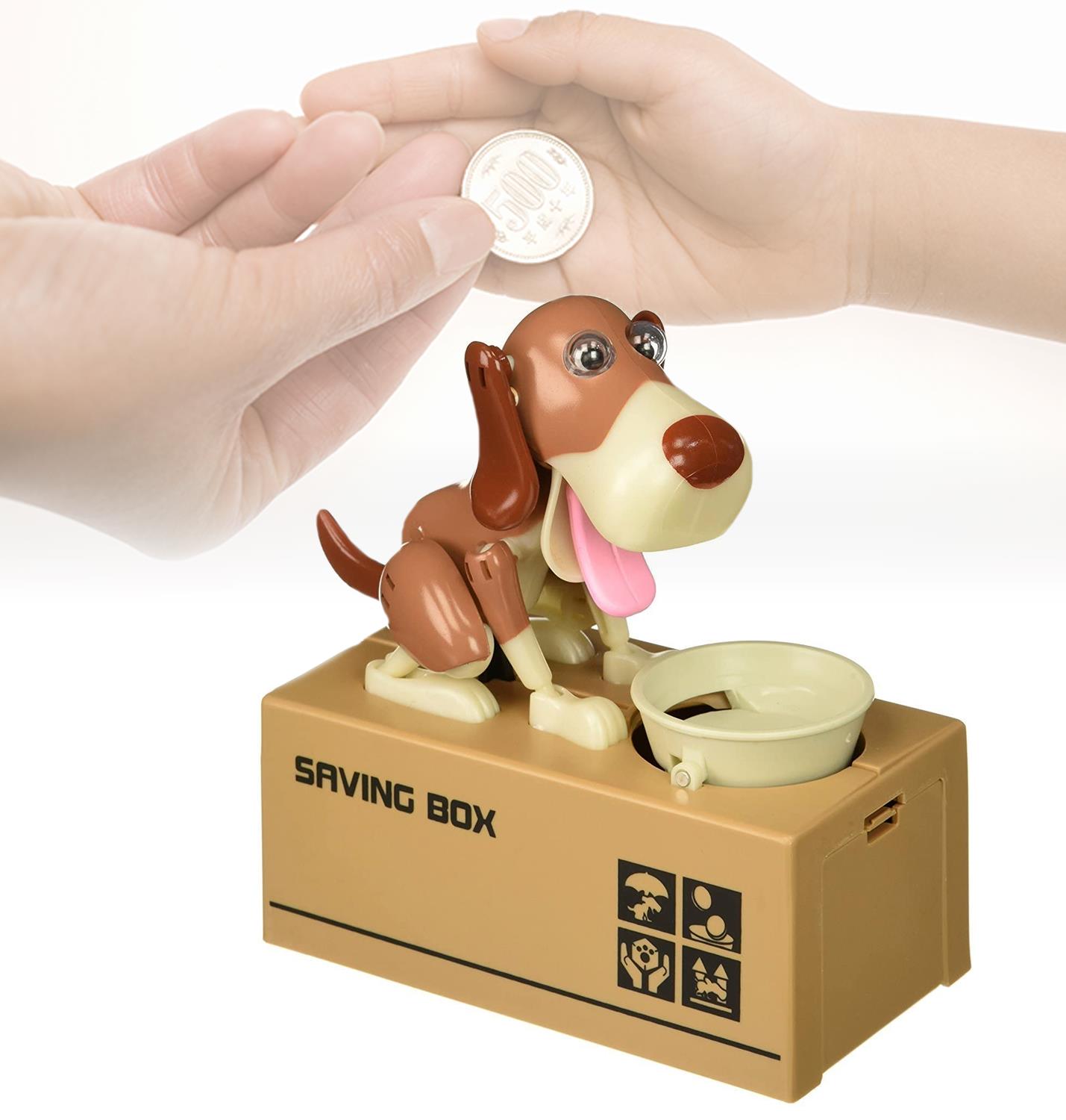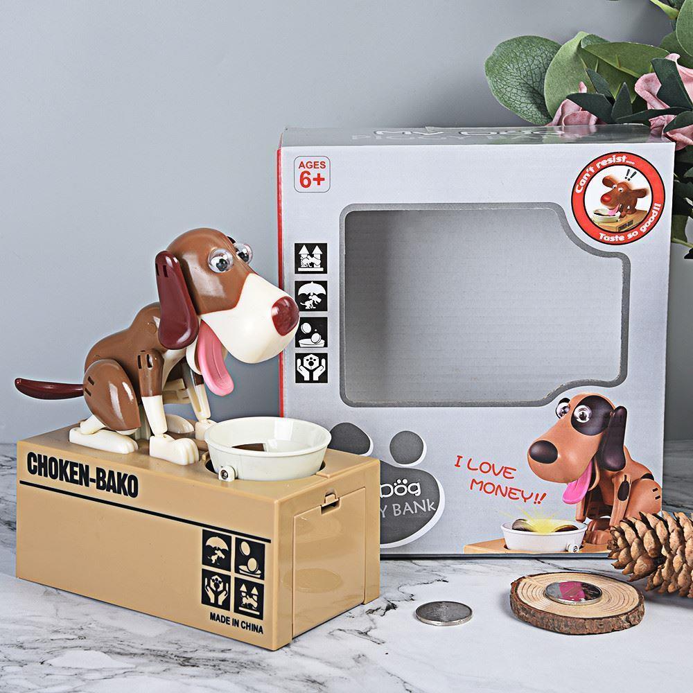 Aranyos persely éhes kutyus formában. A gyerekek odáig lesznek érte! A kutyusnak mindig hihetetlen étvágya van, de ha azt hiszed, hogy meg tudod etetni kutyatáppal, nagyot tévedsz! Ha nem hiszed, csak tegyél egy érmét a kutyatálba, és meggyőződhetsz róla magad is. A kutyus azonnal életre kel és lenyeli a behelyezett érmét, mielőtt észbe kapnál. És mi történik az érmékkel ezek után? Ezt elárulják az előlapon található kis ajtók a perselyen.