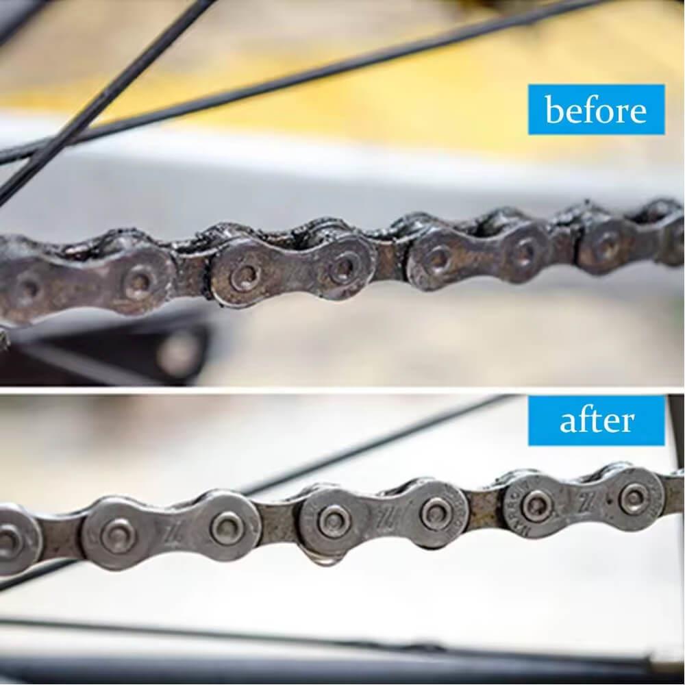 Minden lánc megérdemli a rendszeres gondoskodást, ha simán kell működnie és minél tovább kell tartania. A por, a sár és a régi kenőanyag könnyen lerakódik rajta, ami fokozatosan csökkenti a teljesítményét és élettartamát. Elég, ha felakasztja a kerékpárt, felhelyezi a lánctisztítót, majd feltölti tisztítószerrel, amely elvégzi a többi feladatot. A forgó kefék rendszere gondosan megtisztít minden láncszemet és a lánc fogai közötti teret is anélkül, hogy le kellene szerelnie azt.