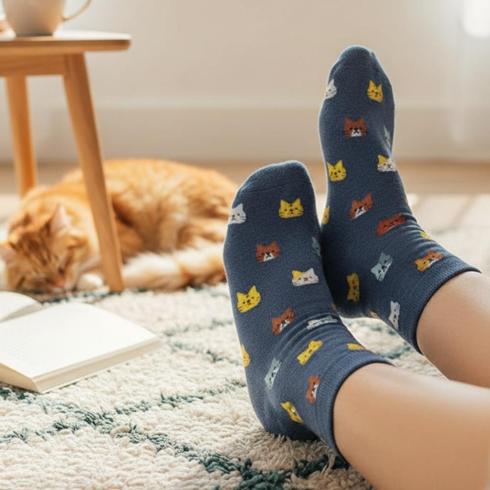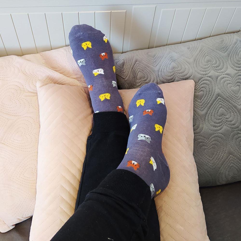 Melengető zokni ötletes megoldással. A cicás zokni minden macskabarátot elragadtat. Az eredeti megjelenés biztosan mindenkit felkelti. A vidám zoknik nemcsak melegítenek, de egyben feldobják a stílusodat is. A minőségi kidolgozás és kellemes anyag garantálja, hogy öröm lesz őket viselni.
