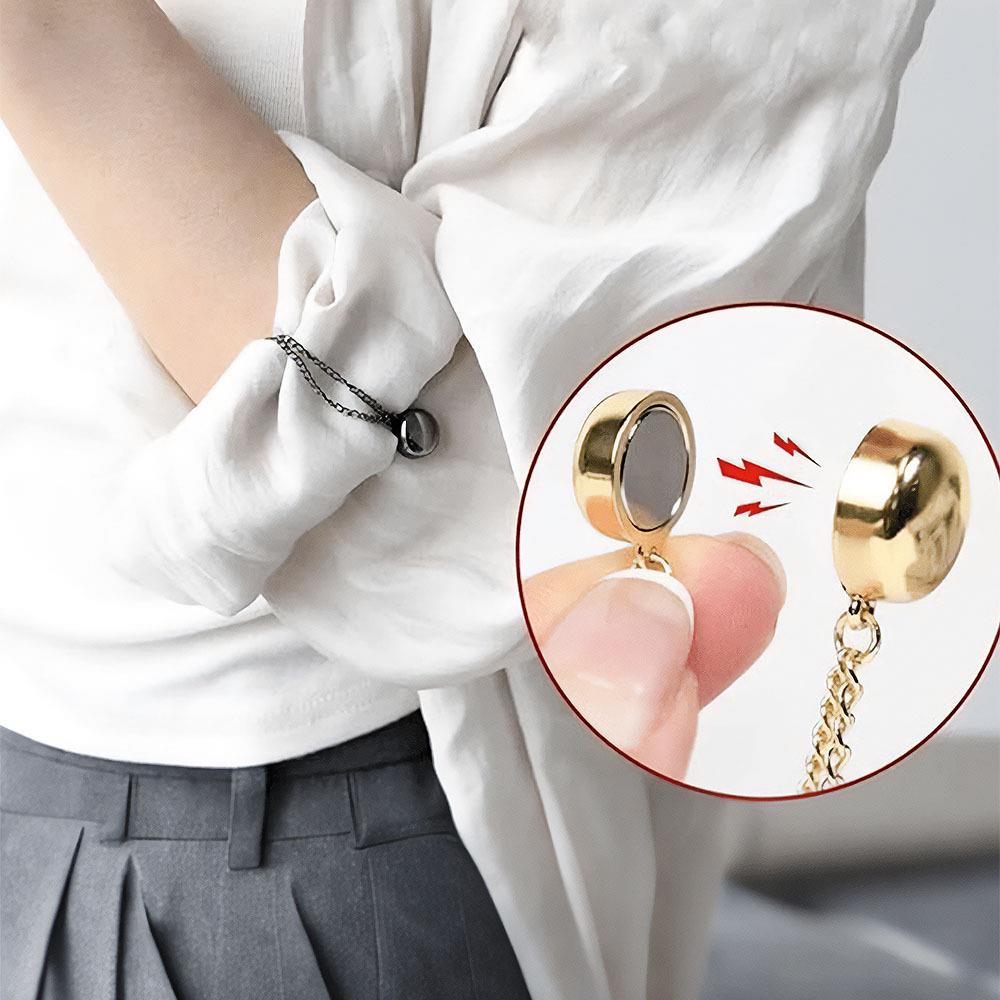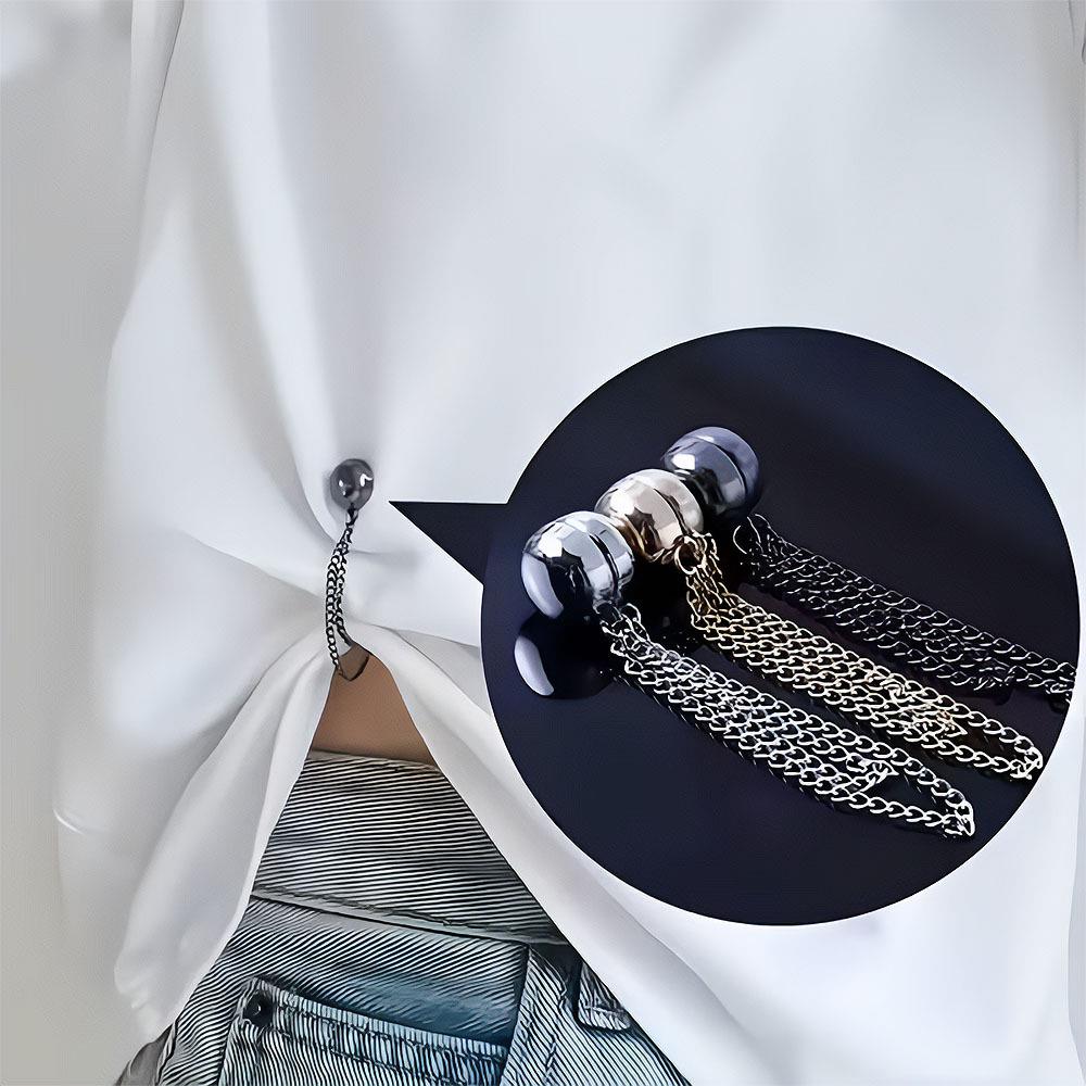 A mágneses láncos nadrágrövidítő kapocs okos találmány mindenkinek, akinek néha hosszabb a nadrágja vagy az ujja, mint kellene. Varrás, ragasztás és stressz nélkül – csak hajtsa fel az anyagot a kívánt hosszra, és csíptesse rá a mágneses végeket. Kész is, mindössze néhány másodperc alatt.