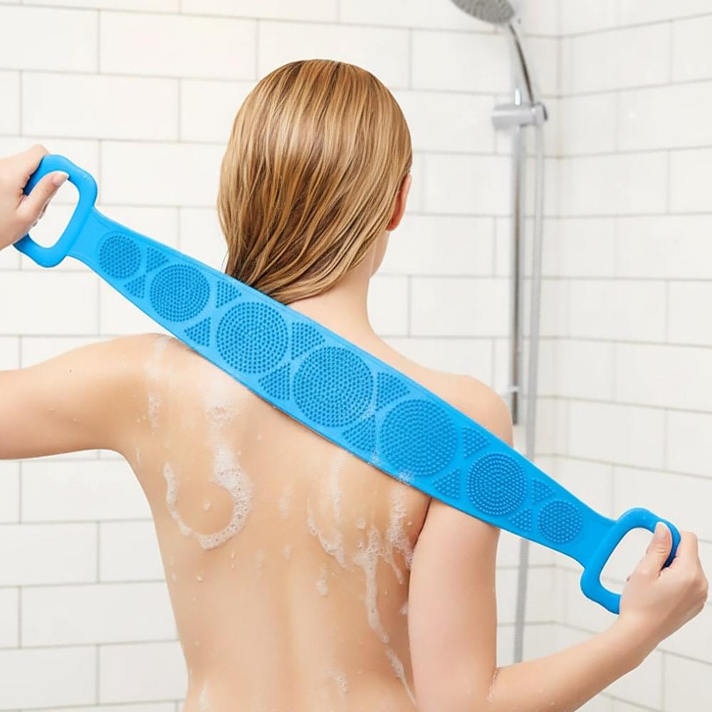 Mindkét végén ergonómikus fogantyúk találhatók a jobb kezelhetőség érdekében, valamint a fürdőszobába való felakasztáshoz. A szilikon masszázspánt nyújtható, így a hát lemosása és masszírozása nem megerőltető, és mindenki számára könnyen megoldható.