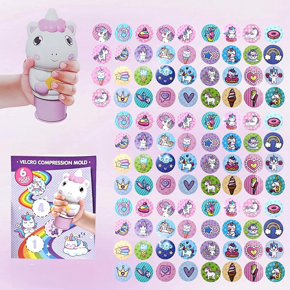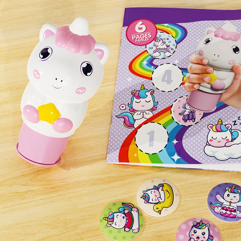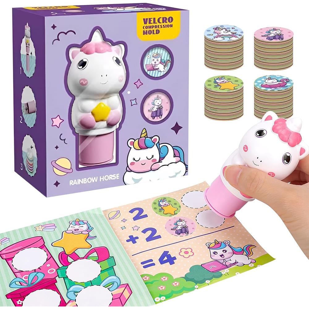 A bélyegző nem igényel semmilyen további ragasztót vagy tintát – egyszerűen nyomja le. A csomagolásban 100 db matrica, egy 6 oldalas könyv a matricák nyomtatásához, és maga a bélyegző található. Ezzel az ajándékkal biztosan nem téved a gyerekek számára!