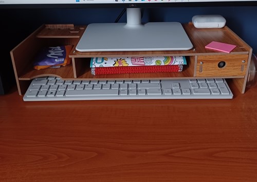 Sokoldalúságának köszönhetően elegendő helyet biztosít könyvek, telefon és egyéb irodai tárgyak tárolására. A szervező egy fiókkal és két rekesszel rendelkezik, amelyek segítenek rendben tartani az íróasztalt. A ceruzatartók további praktikus felhasználást biztosítanak ennek az elegáns és funkcionális monitortartónak.