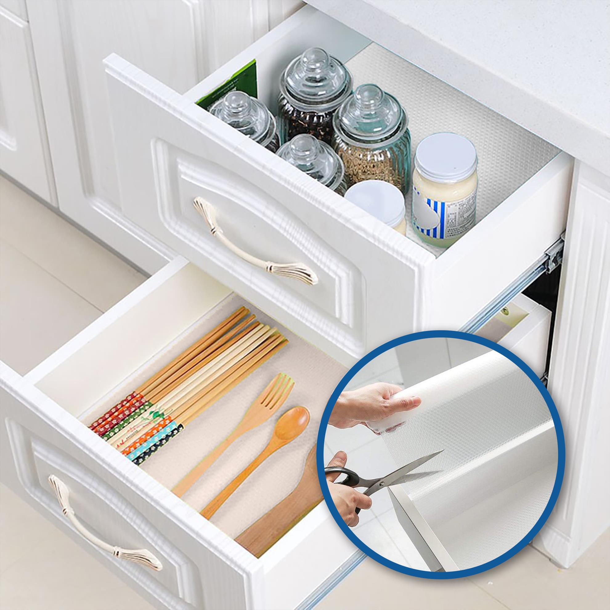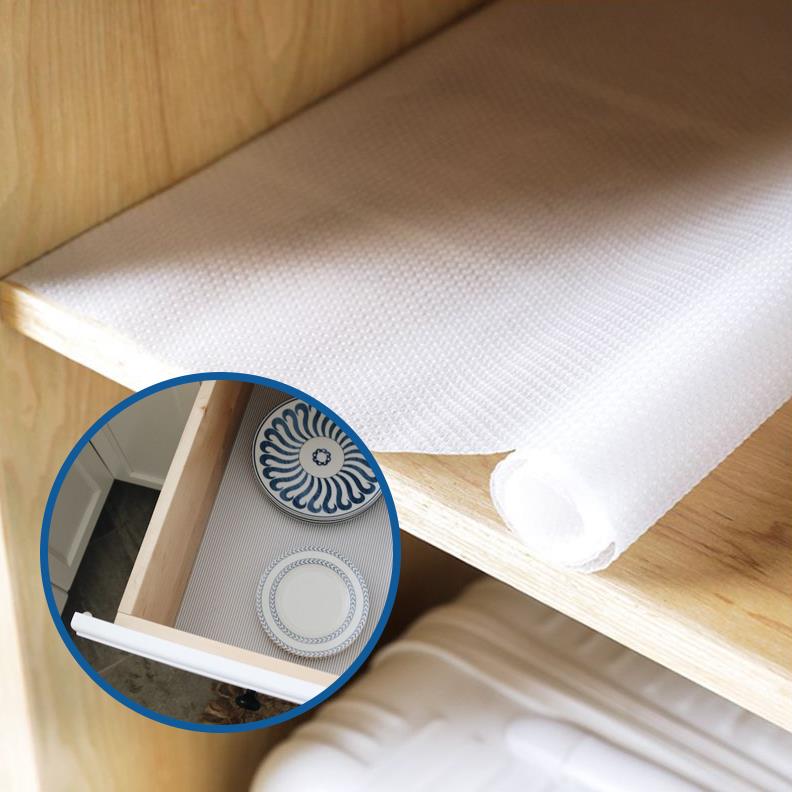 Csúszásgátló alátét, amely praktikus segítőtárs a rend megőrzésében a fiókokban, szekrényekben vagy akár a hűtőben is. Megakadályozza az elhelyezett tárgyak elmozdulását, védi a felületeket a karcolásoktól, szennyeződésektől és nedvességtől, valamint segít tisztán és átláthatóan tartani a tárolótereket.