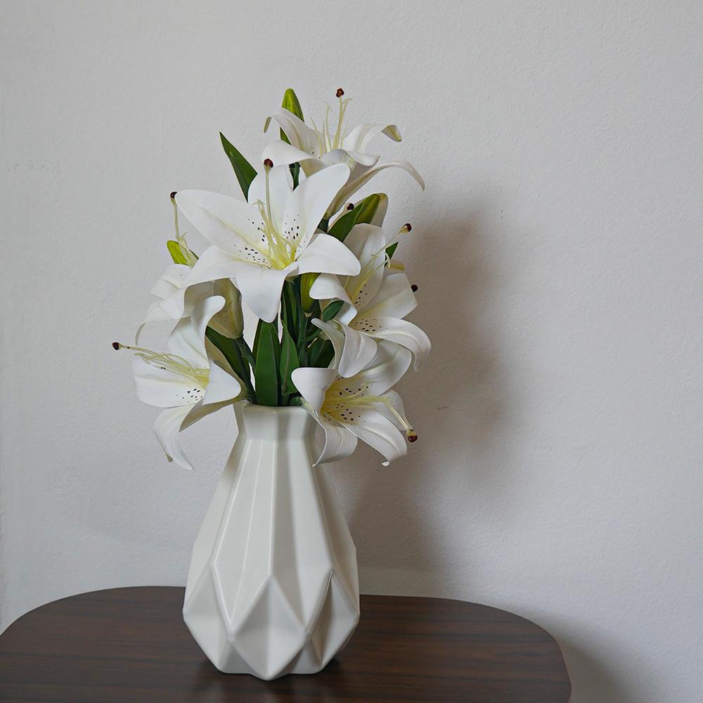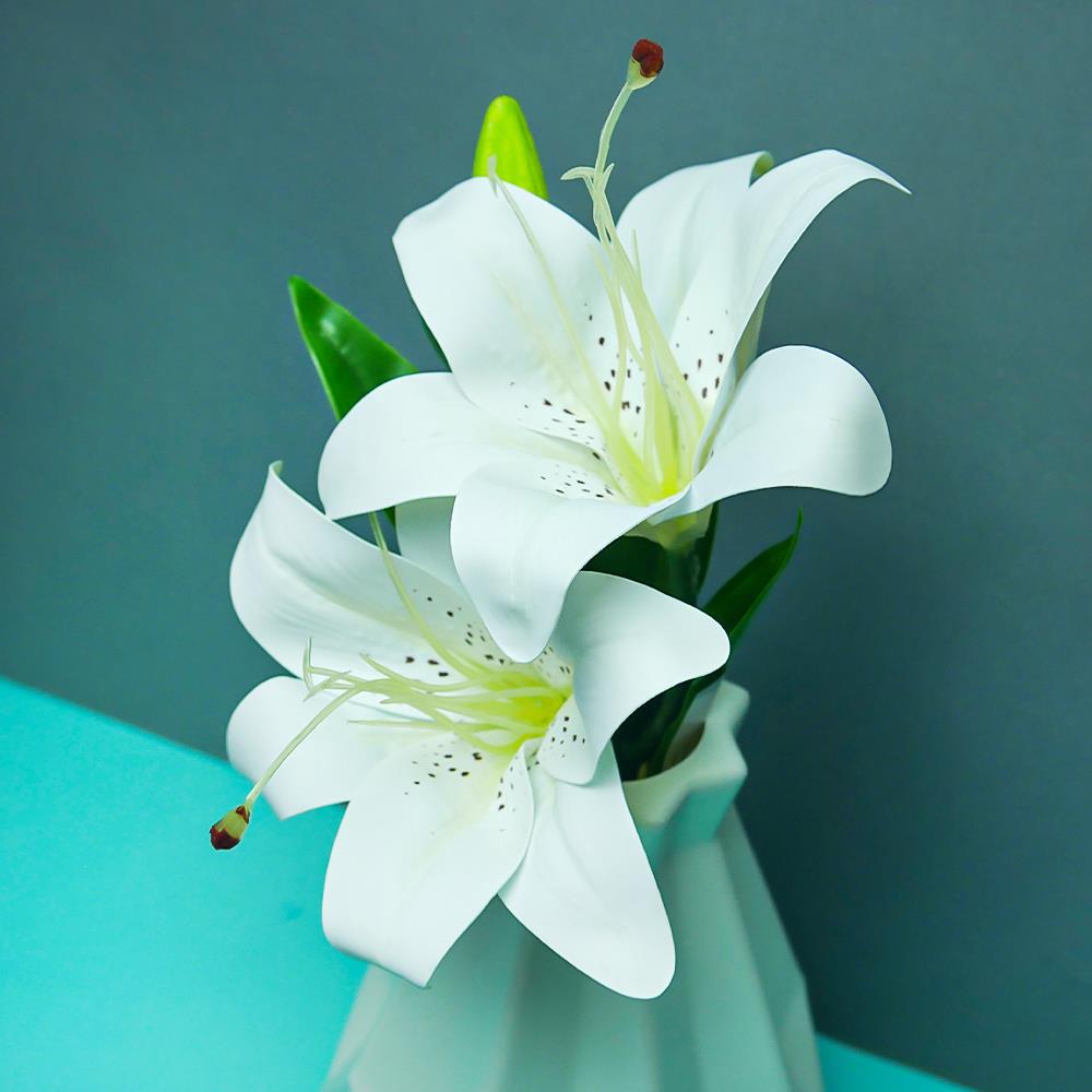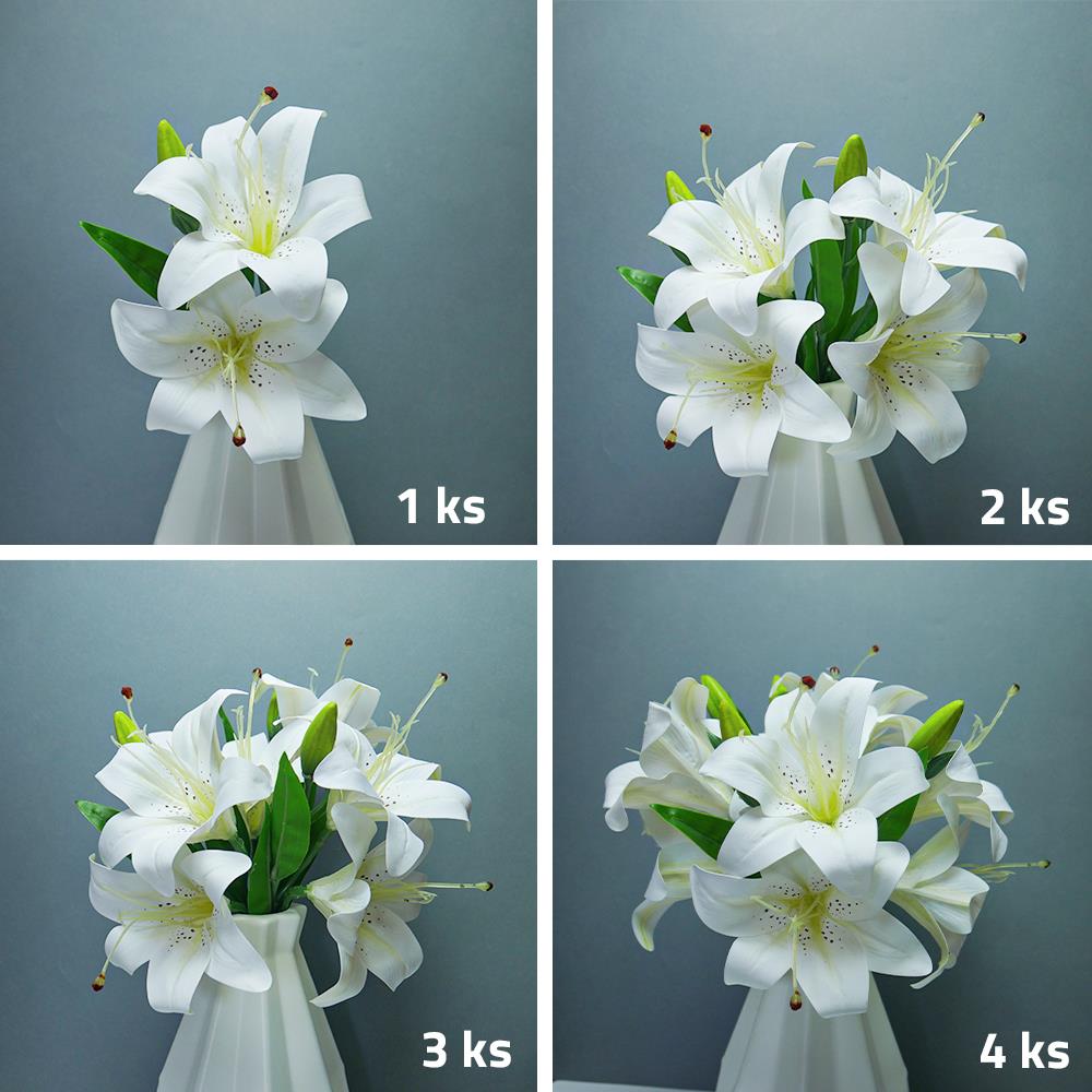 A műliliák csokra nagyszerű megoldás azok számára, akik szeretik a virágokat, de nincs idejük gondoskodni róluk. A valósághű megjelenésének köszönhetően úgy hat, mintha frissen vágott virágok lennének. A virágok gazdagok, finoman színezettek és részletgazdagon kidolgozottak. A csokor nem igényel semmilyen karbantartást, így szépségét folyamatosan élvezhetjük.