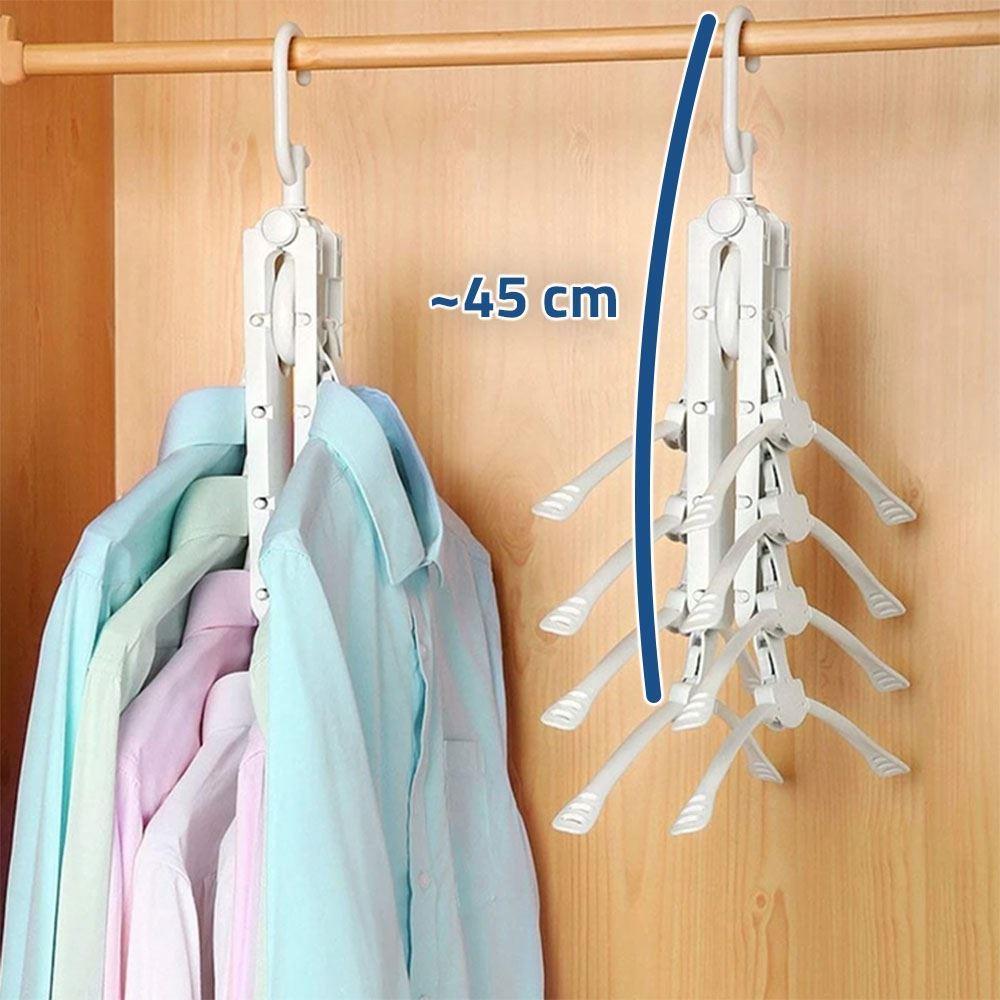 Ez az ügyes vállfa akasztó segít ebben. Jobb szervezést biztosít a ruhák számára a szekrényben. Kibontható állapotban is használható, vagy az organizert átfordítva helytakarékos verziót lehet létrehozni, ami helyet takarít meg a szekrényben. Egyszerű és praktikus megoldás, amelynek köszönhetően minden ruhadarabot átláthat a szekrényben! Most már tökéletes rend lesz a szekrényben, akkor is, ha kevés a hely.