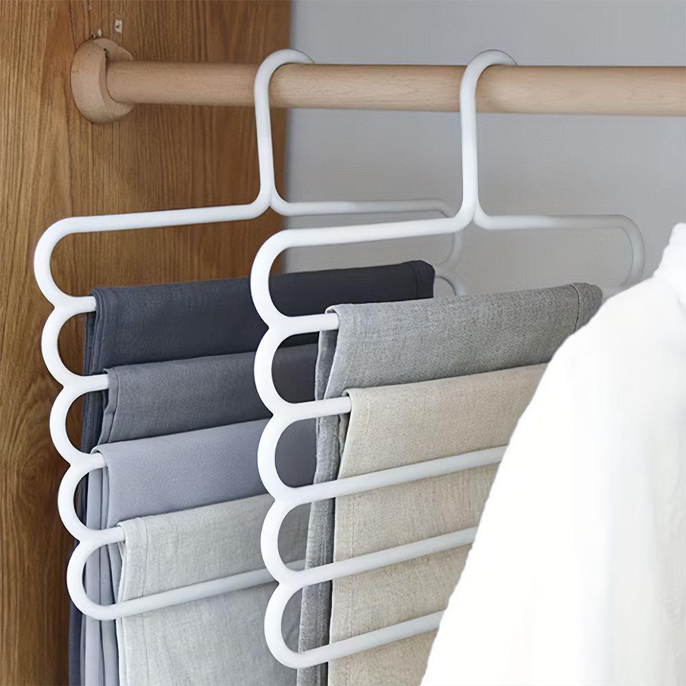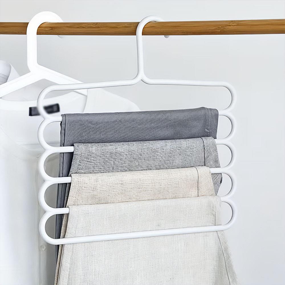 Ez a nadrágtartó vállfa valóban rengeteg helyet takarít meg a szekrényben! Egyetlen vállfára összesen akár öt nadrágot is felakaszthat! Ez már igazán nagy helymegtakarítás. Ráadásul a szekrény sokkal átláthatóbbá válik.