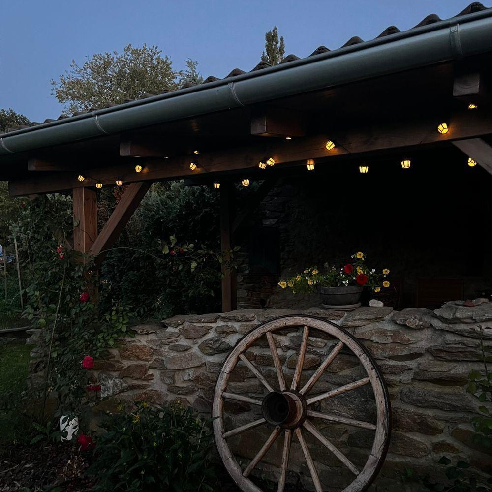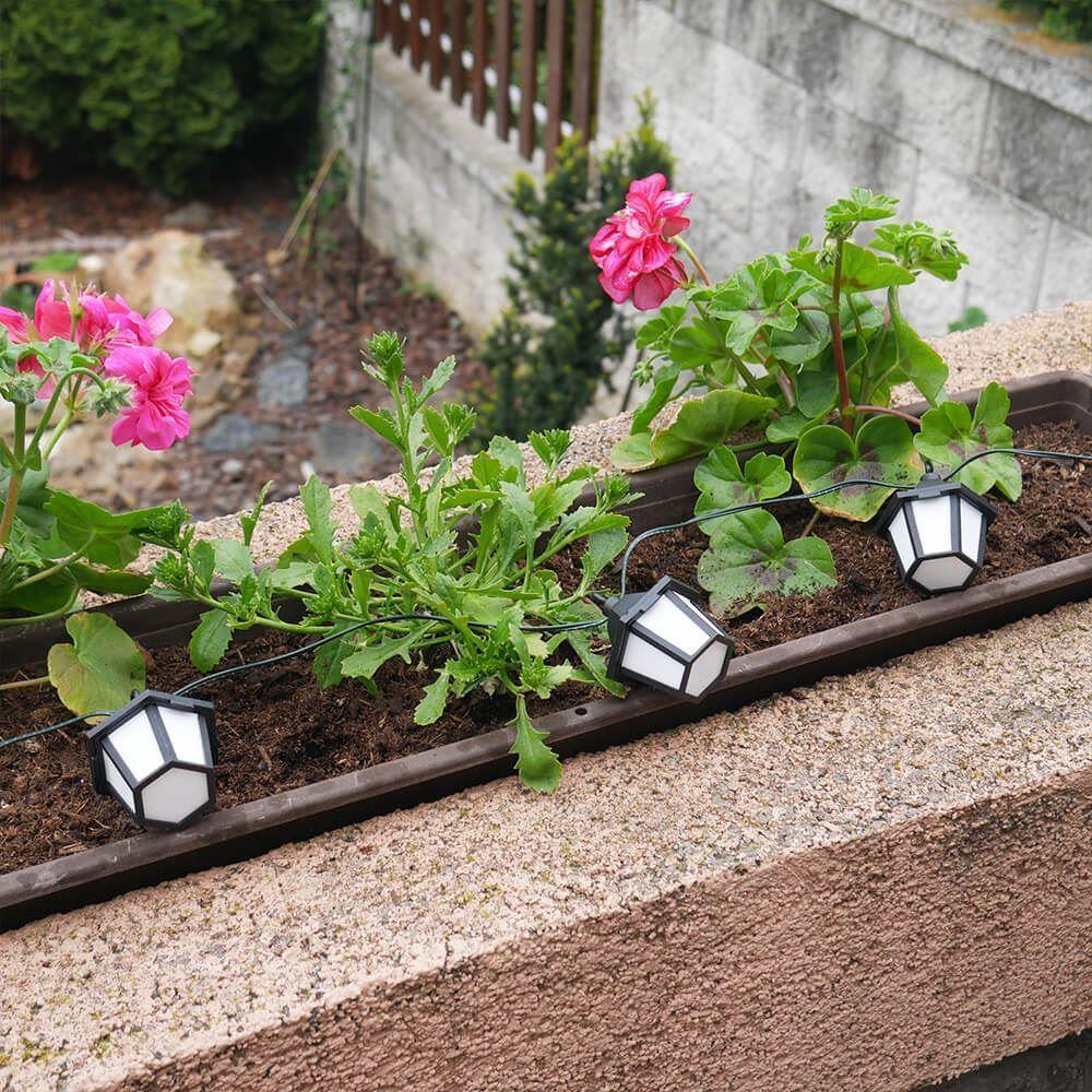 A napelemes lámpásos fényfüzér hangulatosabbá varázsolja kertjét, teraszát vagy erkélyét. Modern, ízléses és ötletes világítás, amely gyönyörűen mutat majd az Ön kertjében is. Élvezze az esti kinti üldögélést romantikus atmoszférában. Ez a fényfüzér remekül illik kerti partikhoz vagy különféle ünnepségekhez is.