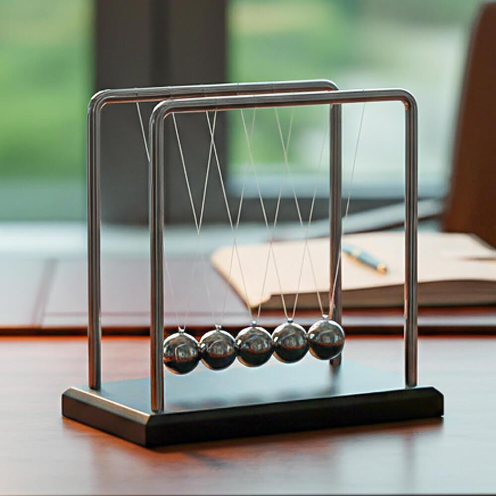 Szerezzen be egy dekorációt, amely bemutatja Newton tudományos felfedezéseit! A hintázó szerkezet a világhírű fizikus, Isaac Newton által feltárt elvek alapján működik. Ez az eszköz a lendület és energia megmaradásának törvényét szemlélteti. Fedezze fel a fizika törvényeit ezzel a Newton-féle hintával.