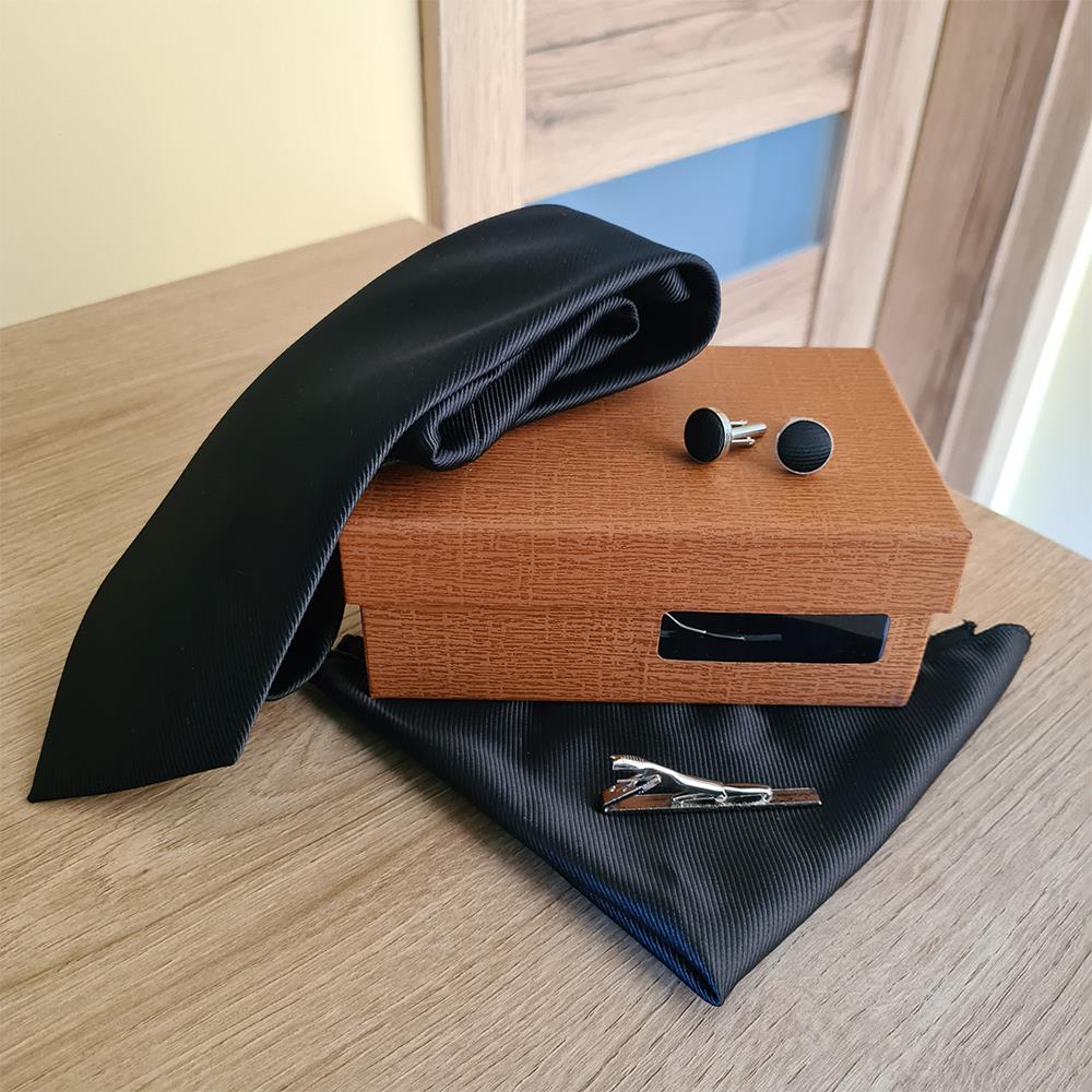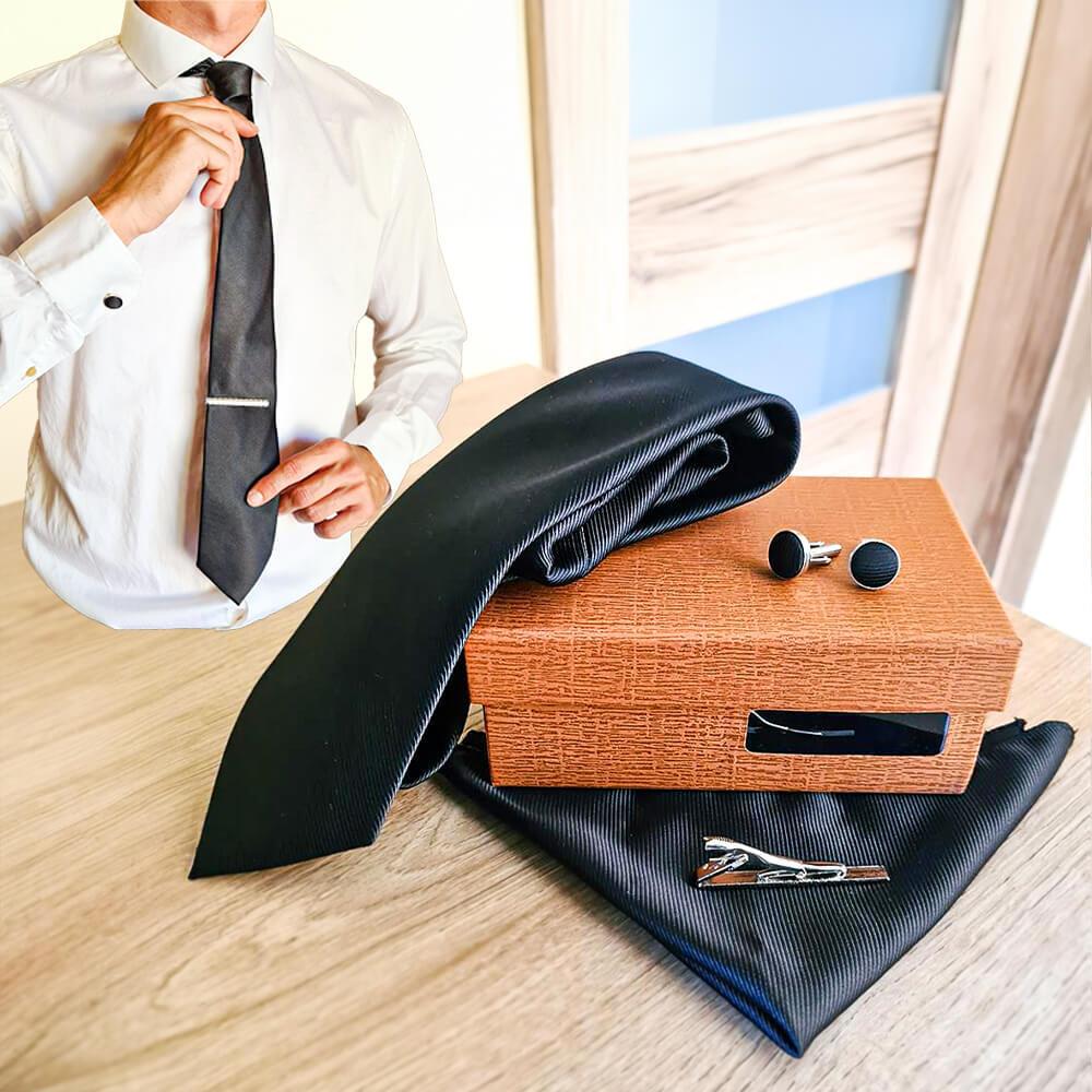 • Elegáns nyakkendő, mandzsettagombok és csatt készlet