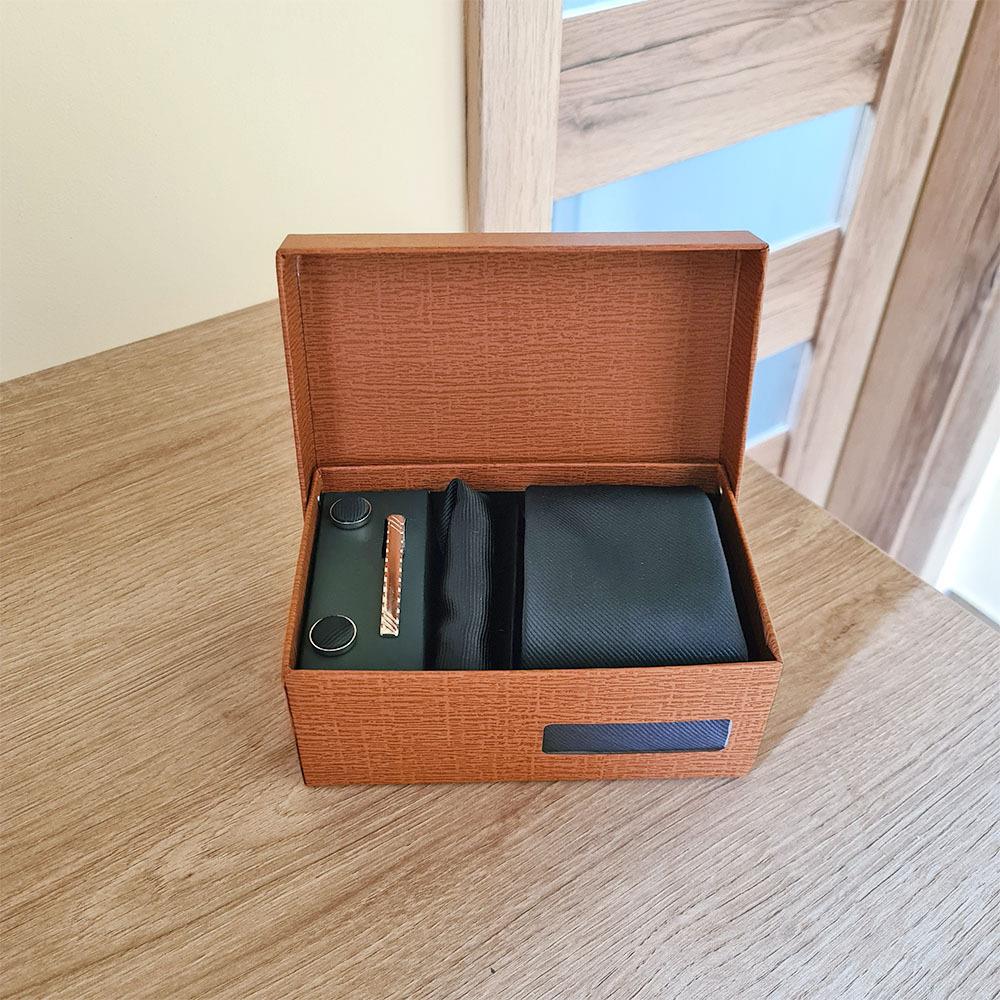 Önnek köszönhetően többé nem kell azon gondolkodnia, mivel egészítse ki az öltönyt, mivel ez a készlet teljesen univerzális, és megfelel mind a társasági eseményekre, mind a formálisabb munkahelyi megbeszélésre vagy állásinterjúra. Ajándékozza meg olyan aprósággal, ami fiókba is befér, de pillanatok alatt magasabb szintre emeli a megjelenését, mindezt erőfeszítés nélkül és hosszú töprengés nélkül. Ezzel időt is ajándékoz neki, amit olyan tevékenységekkel tölthet, amelyek fontosak neki.