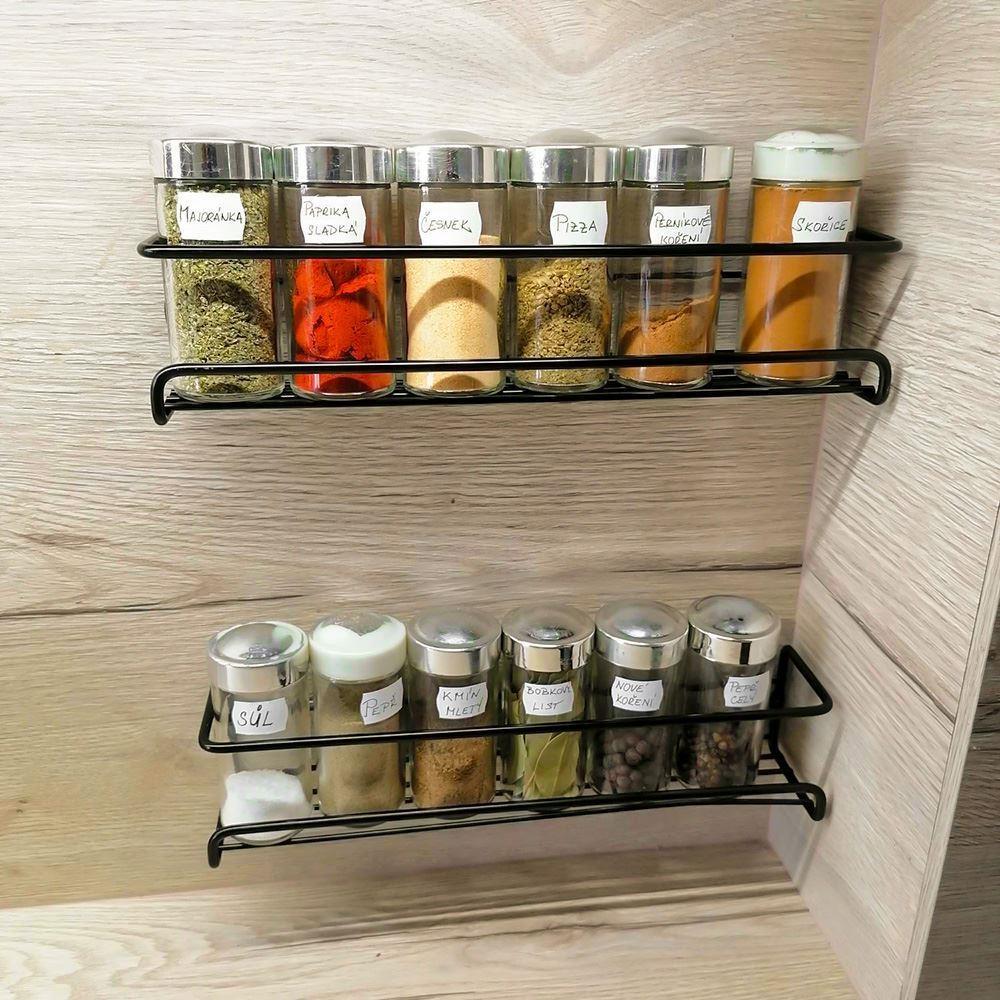 A rögzítés lehetőségei lehetővé teszik a stabil rögzítést fúrással vagy a gyorsabb ragasztást. A polc nem csak a fűszerek tárolására alkalmas. Használhatja konyhában fűszerekhez, olajokhoz, keverékekhez és egyéb konyhai eszközökhöz, valamint fürdőszobában samponokhoz és más higiéniai termékekhez. A polc további darabokkal való kombinálásával saját igényei szerint alakíthat ki tárolórendszert.