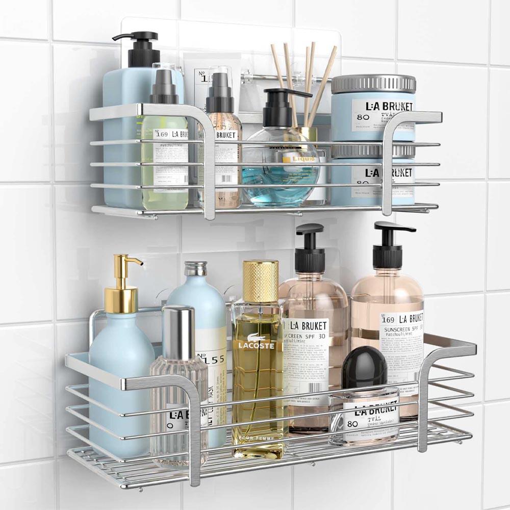 A 30 cm hosszúságú öntapadós rozsdamentes acél zuhanypolc modern és praktikus megoldás minden fürdőszobába vagy konyhába. Az öntapadó rögzítésnek köszönhetően pillanatok alatt, fúrás nélkül felszerelhető – ideális választás különösen albérletekbe.
