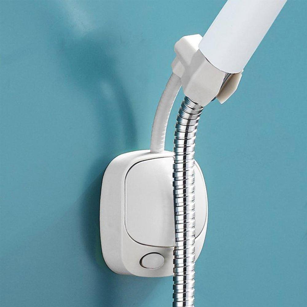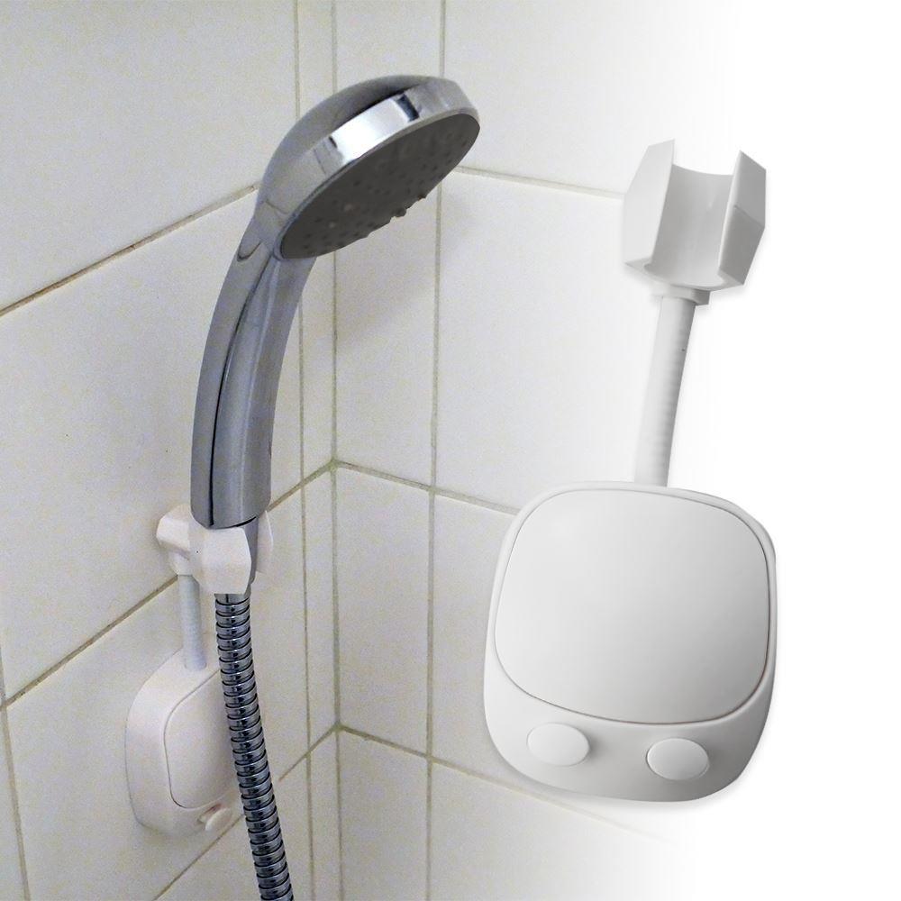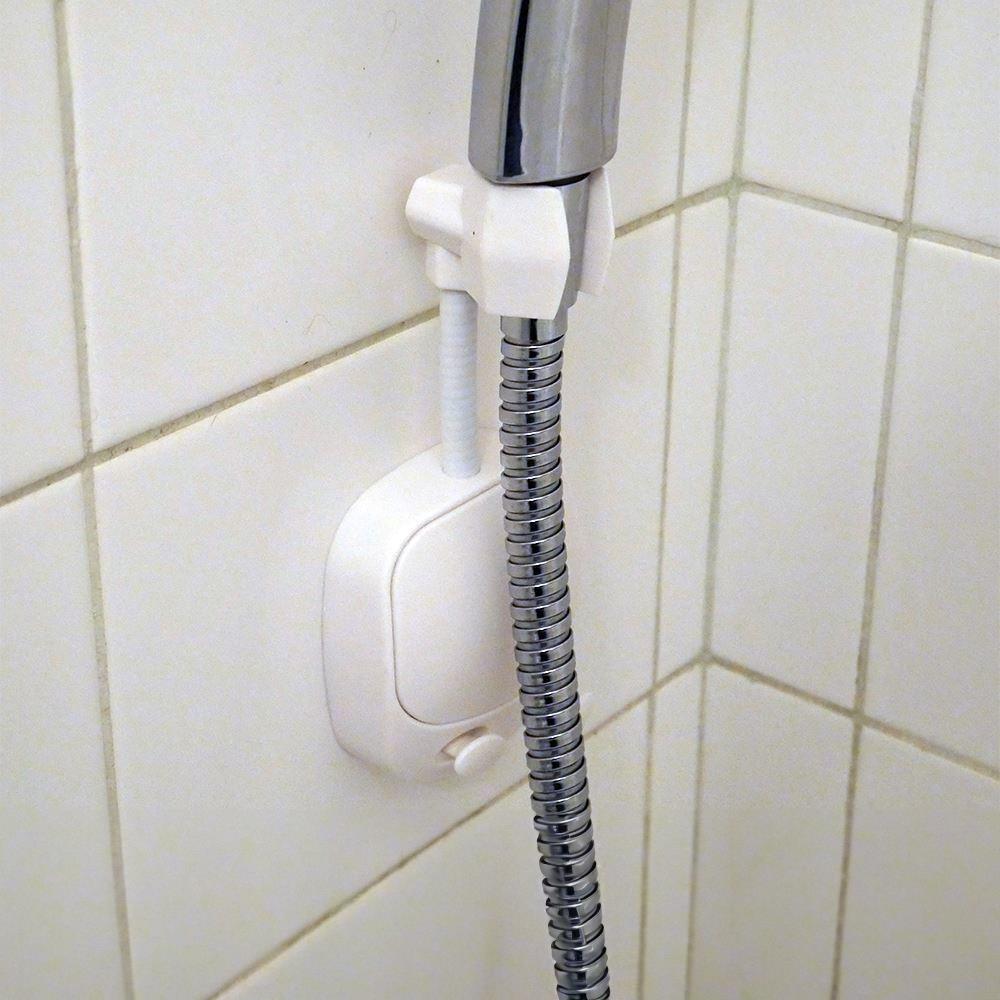 A zuhanyfej tartója kiváló minőségű anyagból készült. 360°-ban forgatható, így a zuhanyt kényelmesen beállíthatja, ahogy Önnek megfelel. Kompatibilis a legtöbb szabványos zuhanyfejjel, és sima felületekre – mint például kerámia, fém, üveg stb. – rögzíthető. A tartón két kis akasztó is található, amelyre például szivacs is felakasztható. Így mindent kéznél tarthat. A szivacs is gyorsabban megszárad, mert nem kell máshová letenni.