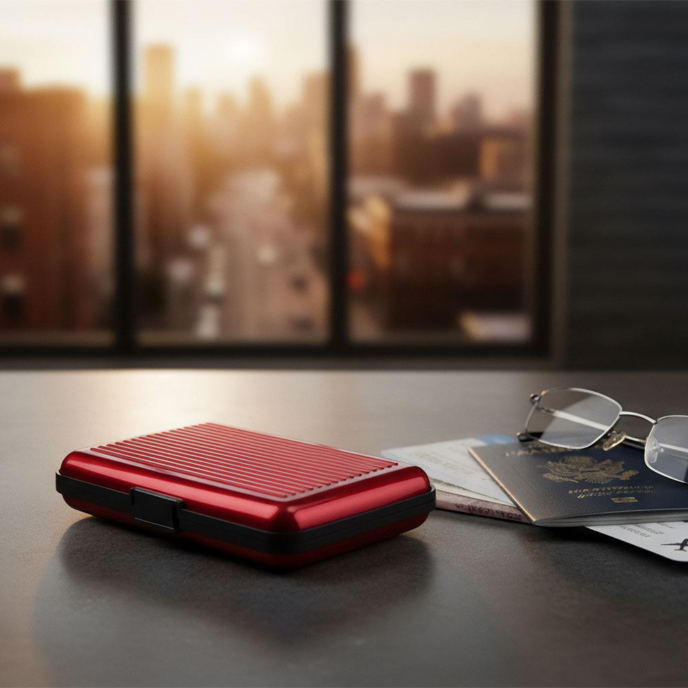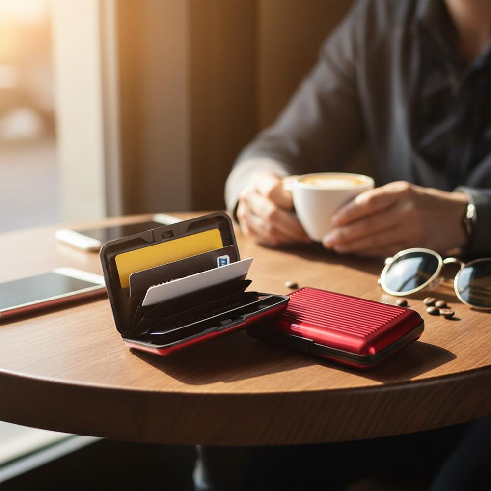 A kemény és zárható tokból gyorsan rendelkezésre állnak a személyes kártyák.