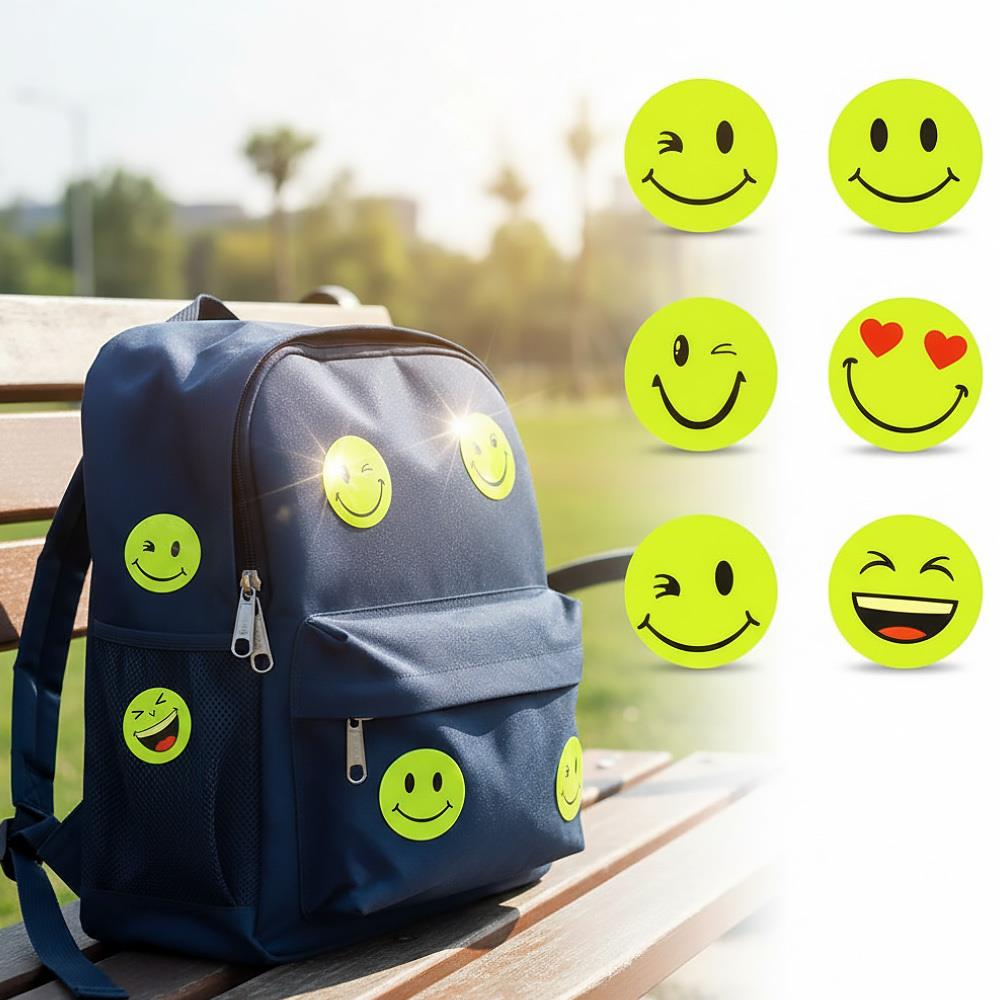 A fényvisszaverő matricák prizmás funkcióval rendelkeznek, melyeket felragaszthat a biciklire, hátizsákra, sisakra vagy bármilyen más tárgyra.  A fényvisszaverő elemek növelik a biztonságot. A mókás és aranyos szmájlik így életet is menthetnek. A praktikus fényvisszaverő matricák minden háztartásban hasznosak lesznek. A család minden tagja használhatja őket. Legyen szó kerékpározásról, futásról vagy akár csak arról, hogy gyalogosan sötétben térnek haza, a fényvisszaverő szmájlik vigyáznak az önök biztonságára!