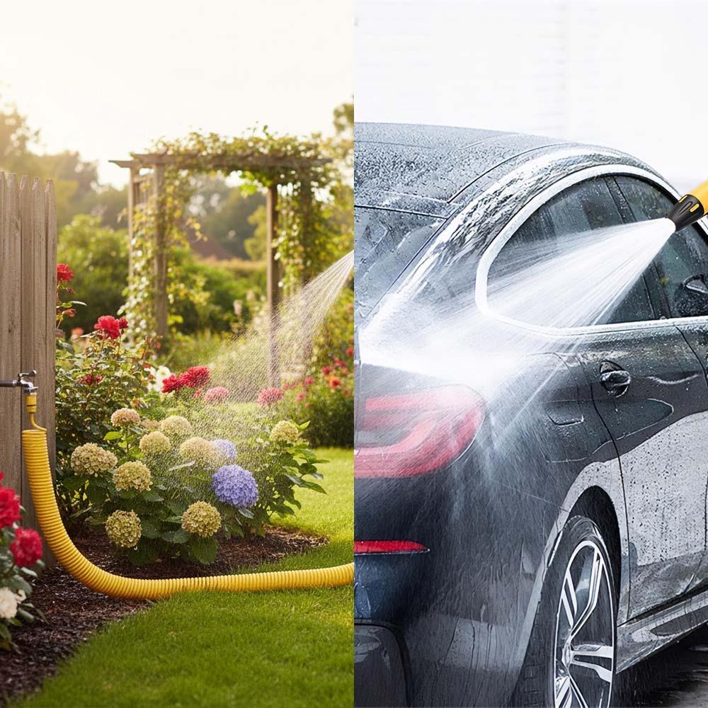 A csomag praktikus pisztolyt tartalmaz, mellyel a vízsugarat az igényeknek megfelelően állíthatod, akár virágokat öntözöl, teraszt mosol vagy biciklit tisztítasz. A gyorscsatlakozóknak köszönhetően a vízvezetékhez való csatlakozás gyors és kényelmes, a csomag tartalmaz csaphoz való adaptereket is. Fontos: ez nem magasnyomású mosó – ez egy klasszikus, spirálba tekert kerti tömlő, hétköznapi kerti használatra.