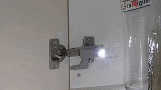 A szekrénybe szerelhető LED lámpa praktikus megvilágítást nyújt sötét helyekre és zugokba. Esténként egyszerűen világíthat rá ruháira vagy ételeire. Mivel a lámpa a szekrény zsanérjára szerelhető, az automatikusan felkapcsolódik ajtónyitáskor, majd újra lekapcsolódik, amikor becsukja az ajtót. Különösen alkalmas ruhás- vagy konyhaszekrényekbe.