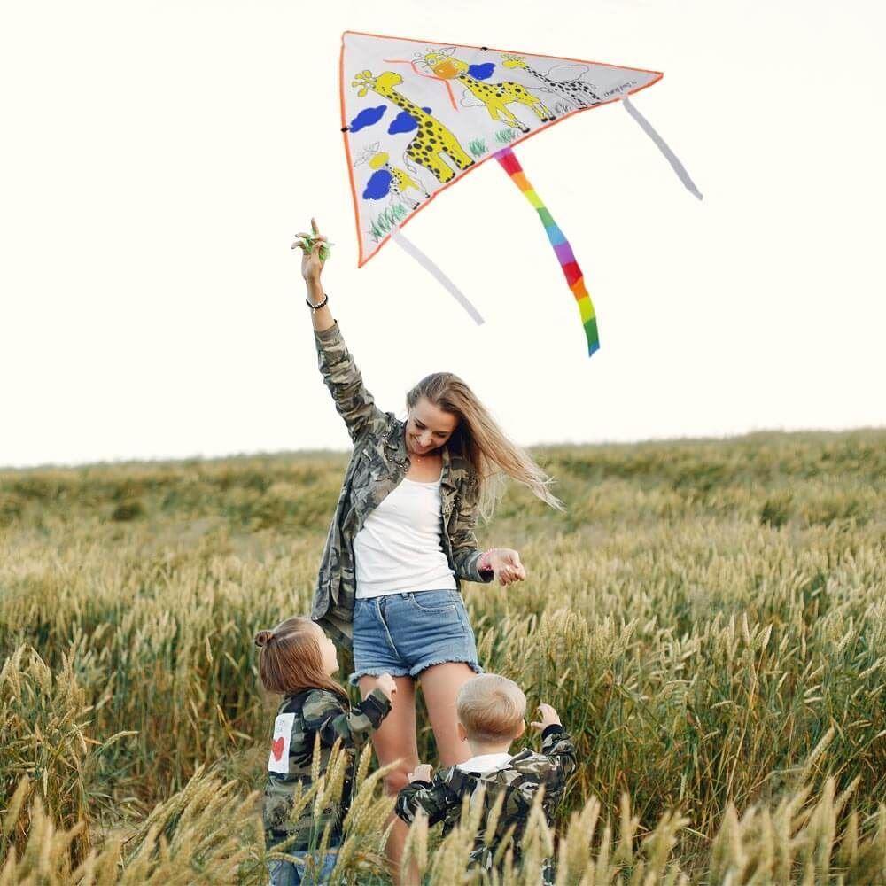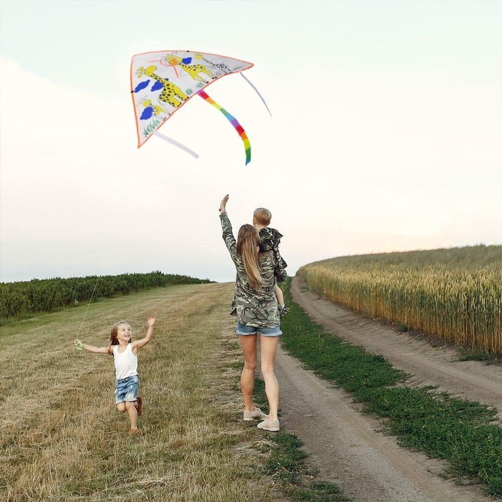 Ez a gyönyörű repülő sárkány egyszerre két tevékenységgel örvendezteti meg a kicsiket és a nagyokat. Először is kiszínezhetitek – a csomag tartalmaz temperafestékeket, amelyeket erre használhattok. Miután pedig a saját fantáziátok szerint kiszíneztétek, elmehettek a sárkányt reptetni. Háromszög alakjának köszönhetően gyönyörűen repül és jól tartja magát a levegőben.