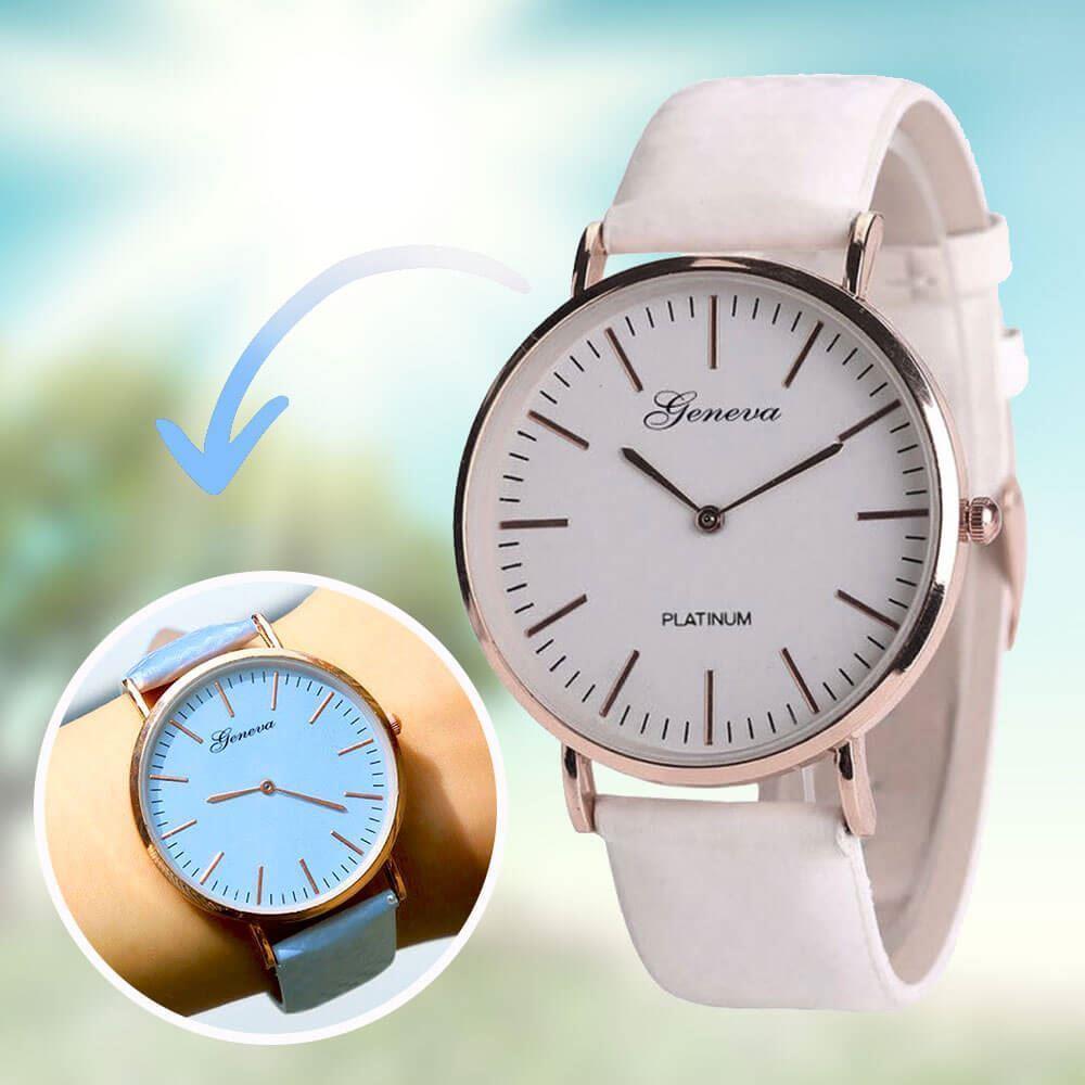 A szíj kellemes pasztellszíneit biztosan megszereti majd. Az óra minden öltözéket feldob! Ha emellett az analóg számlapot részesíti előnyben, telitalálat lesz Önnek.