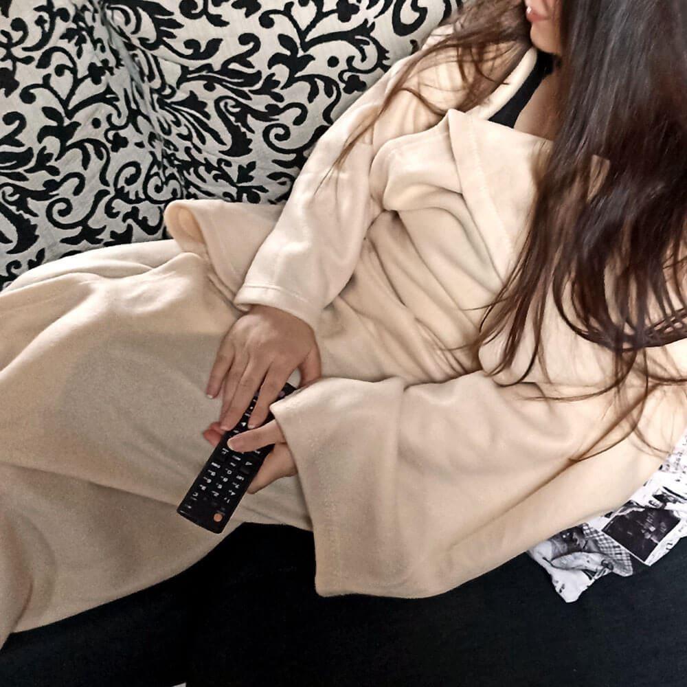 Televíziós takaró! Ajándék az egész családnak! Sokkal jobb, mint egy hagyományos takaró! És ez a rávarrt ujjainak köszönhető. Mindenki imádni fogja. A takaró kellemes anyagból készült, amely kiválóan melegít. A takaróval csakis kényelem, komfort és tökéletes relaxáció vár önre. Ebben a takaróban sokkal könnyebb lesz mozogni. A legjobb például, amikor könyvet lapozgat, nassol, tévézik, Playstation-ön játszik vagy a tévét kapcsolgatja.