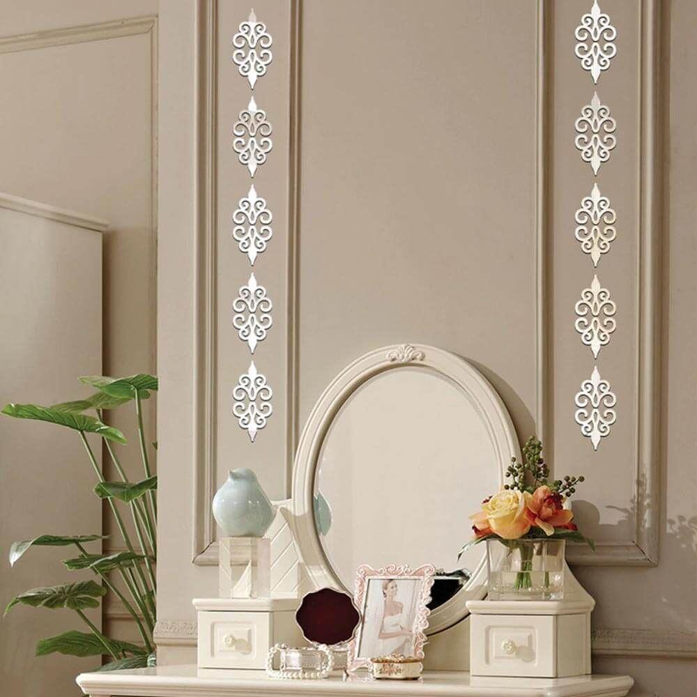 A tükörhatású design matricák eredeti kivitelben felfrissítik bármely helyiséget. Feldobják a falakat, a szekrényajtókat vagy bármely más sima felületet. A tükörhatás optikailag megnöveli a teret. Csak le kell tépni a védőfóliát, és fel kell helyezni a matricát a kívánt helyre. A dekoráció elegáns megjelenést kölcsönöz, és sokoldalúan használható. Jól mutatnak mind a hálószobában, mind a nappaliban.