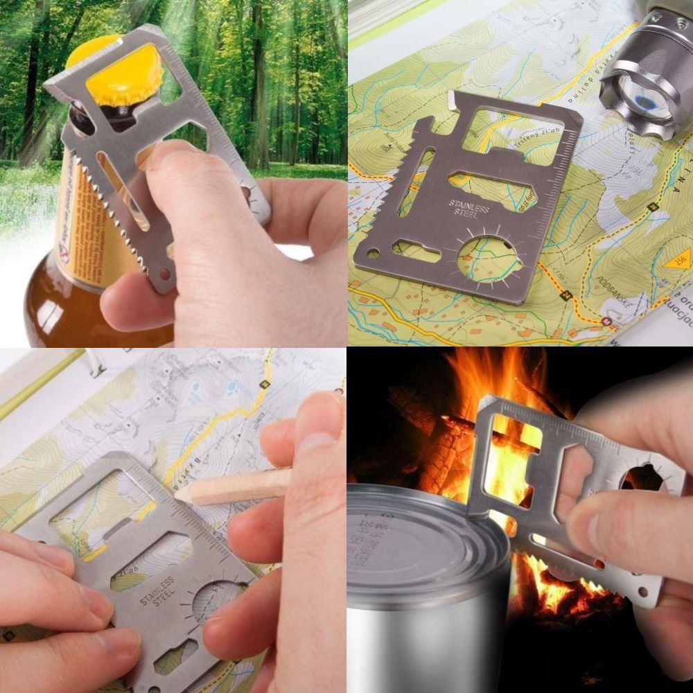 Imádni fogja ezt a multifunkciós túlélőkártyát. A kártya remek segítőtárs minden kiránduláshoz, túrához, kerékpáros utazáshoz és hasonlókhoz. Kiváló minőségű rozsdamentes acélból készült, hogy a vad dzsungelben is túlélje. Szerezze be, sosem tudhatja, mikor lesz rá éppen szüksége.