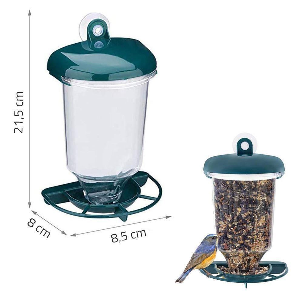 A madarakat akkor is megetetheti, ha nincs erkélye vagy kertje! Ezzel a madáretetővel ez gyerekjáték. Az etető egy tapadókoronggal rendelkezik, így üvegre is könnyedén felszerelhető. Mielőtt rögzíti az üvegre, alaposan tisztítsa meg és zsírtalanítsa az üvegfelületet! Az etető minőségi műanyagból készült. Ennek a madáretetőnek nagy előnye a gravitációs (önadagolós) etetés, ami megkönnyíti a magutántöltést. Az etető biztosan sok madarat fog odavonzani, így ön közvetlenül az ablakából élvezheti a madármegfigyelést!