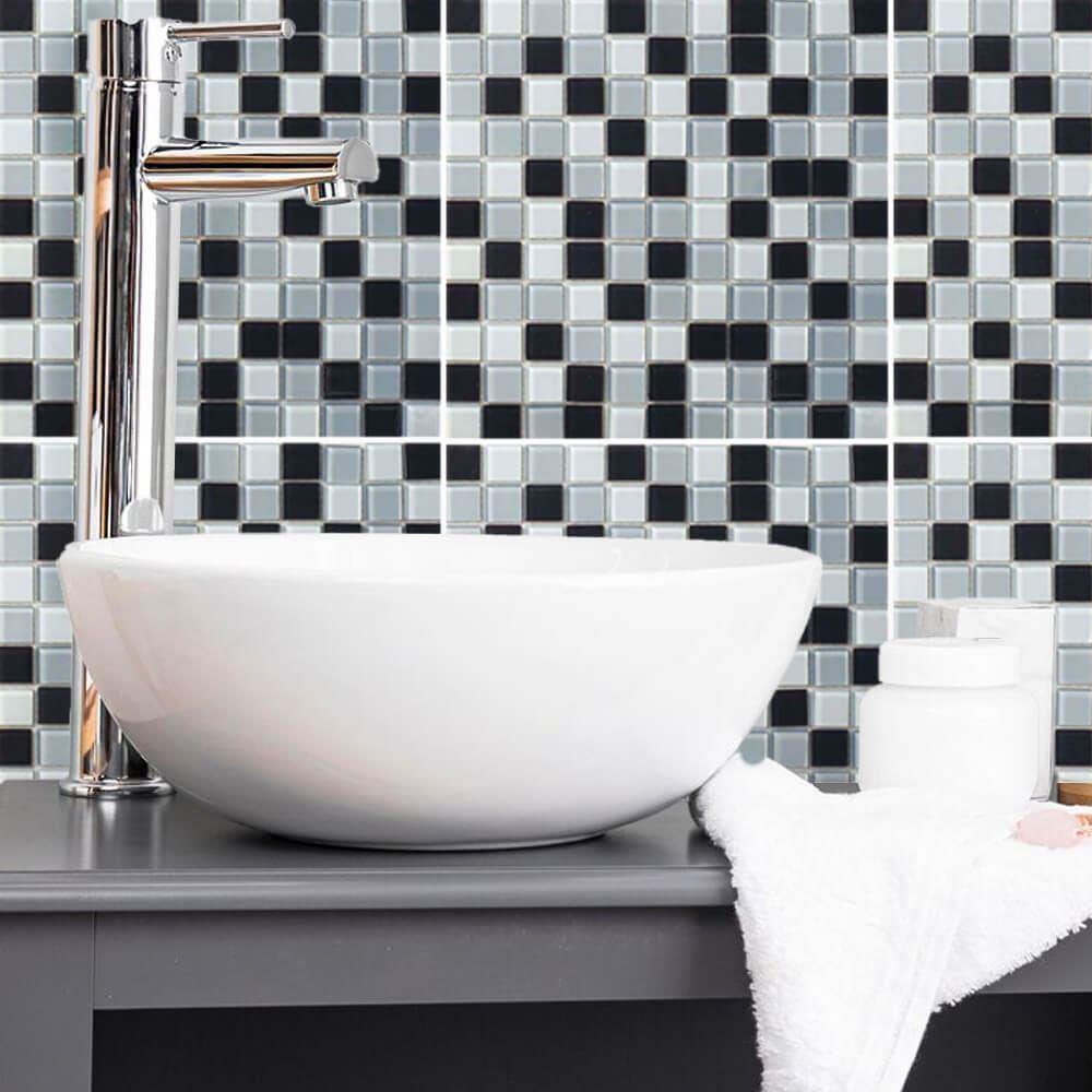 Üvegmozaik rácson 30 x 30 cm - fekete - fehér