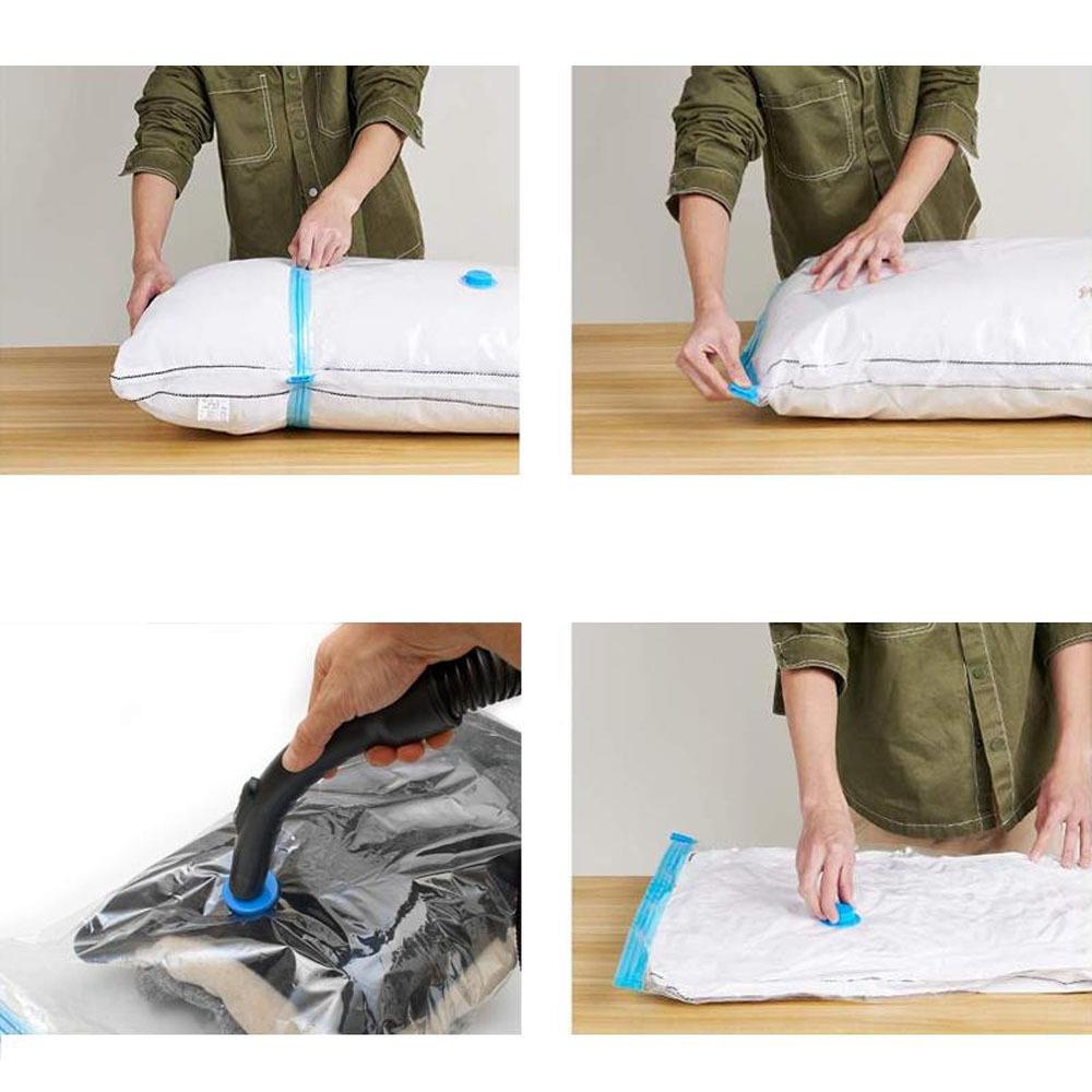 A zsákokat úgy tervezték, hogy akár 75%-kal kevesebb helyet foglalnak el. Olyan ruhák, takarók, párnák, plüssjátékok vagy lepedők tárolására készültek, amelyeket már nem használ mindennap. A működési elvük egyszerű. Tegye bele a dolgokat a zsákba, majd porszívó segítségével szívja ki a levegőt és zárja le cipzárral. Így nem jut be por, ruhamoly, nem nedvesedik át és nem lesz kellemetlen szagú. És mi több: a zsákok nem egyszer használatosak, hanem többször is használhatók.