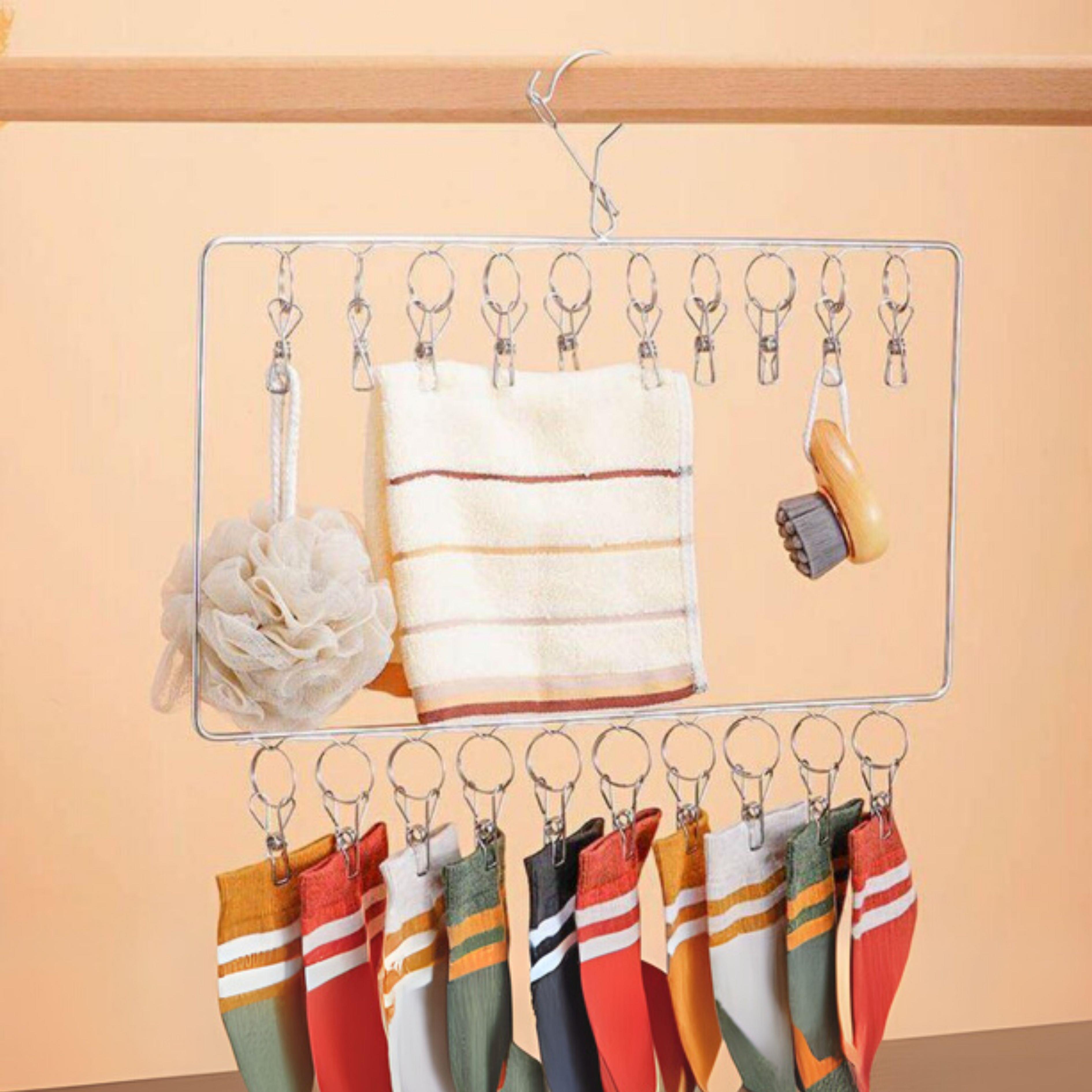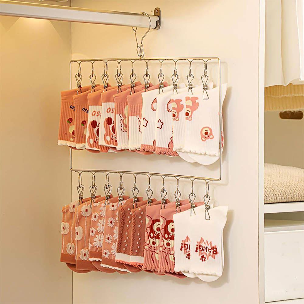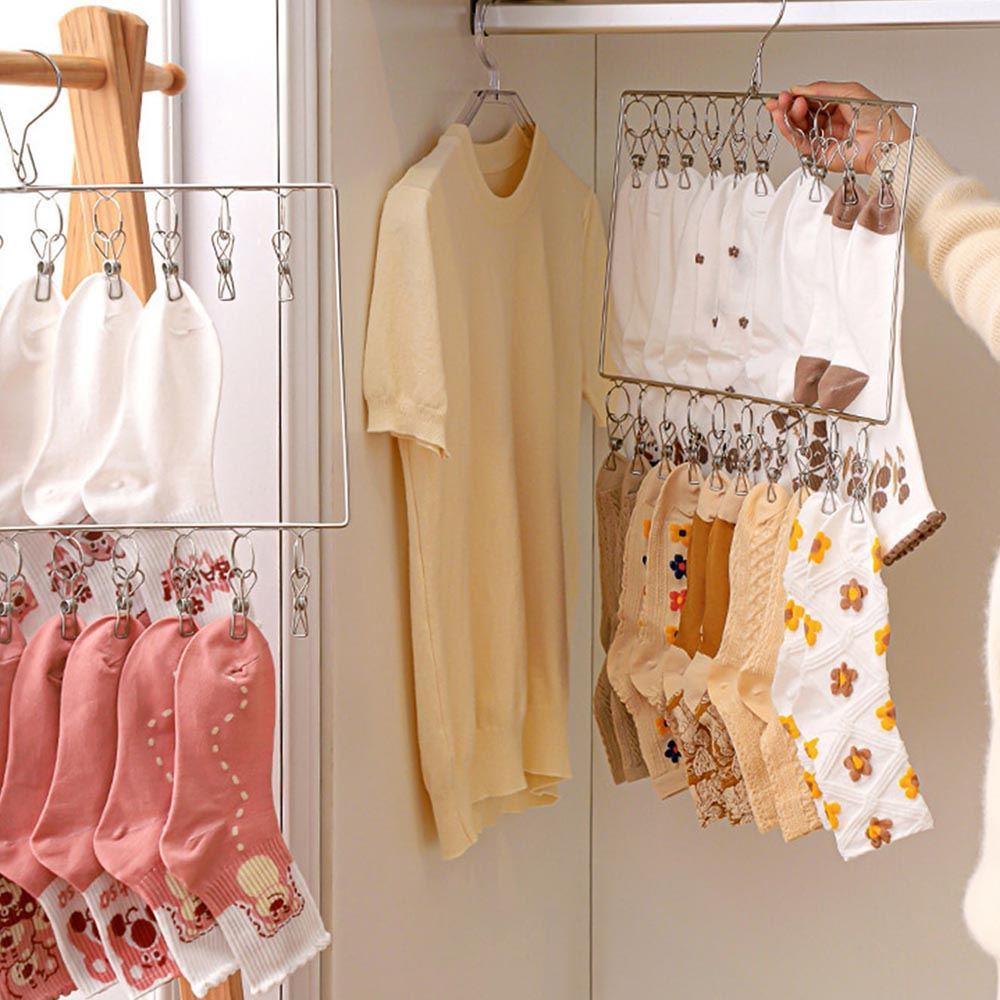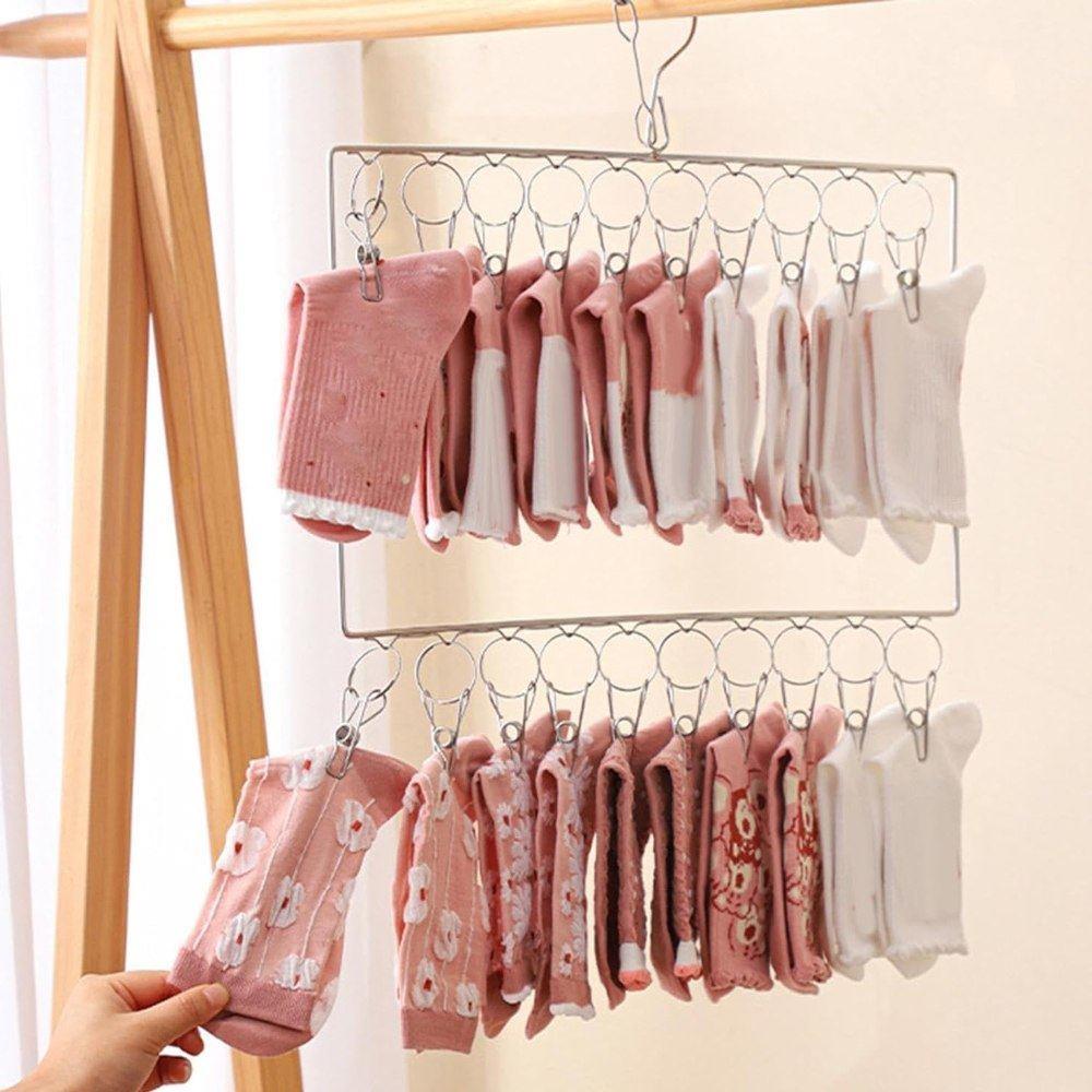 Rendmániákusok és otthoni rendszerezők szerelmesei, figyelem! Biztosan tudjátok, hogy a rendezett szekrény a mindennapi öltözködés alapja. Ezért tárolás szempontjából kifizetődő, ha mindennek megvan a maga helye, pontosabban rekesze vagy vállfája – és éppen egy ilyen különleges darabunk van számodra. Ez az egyszerű, mégis tökéletesen nagyszerű vállfa két sor klipből áll, amelyre nemcsak zoknit, hanem más apró fehérneműket, vagy például nyakkendőket is felakaszthatsz. Helyet takaríthatsz meg a fiókban, és elkerülheted a káoszt, amely akkor alakulhat ki, amikor egy adott darabot keresel, és éppen kifutsz az időből. Szárításra is használhatod, ha éppen nincs elég helyed a szárítón vagy a zsinóron.