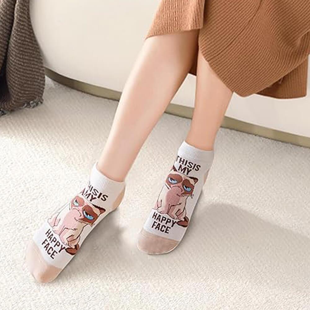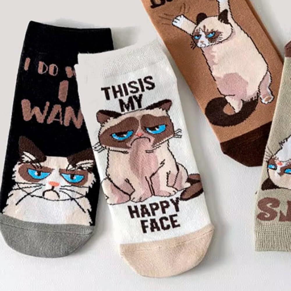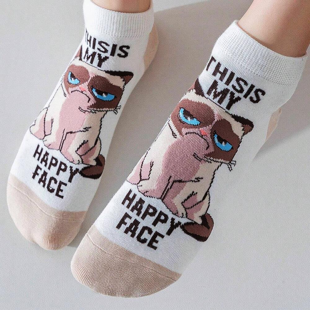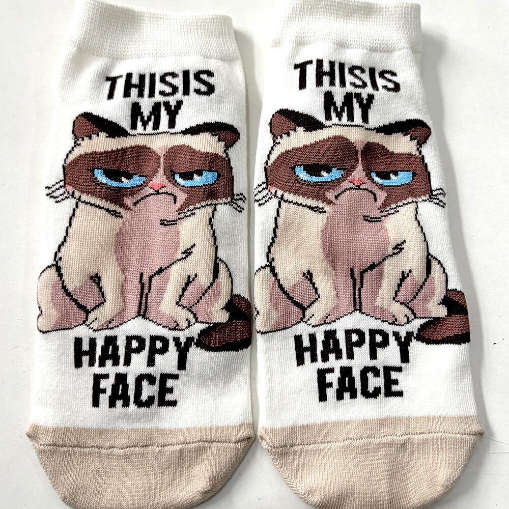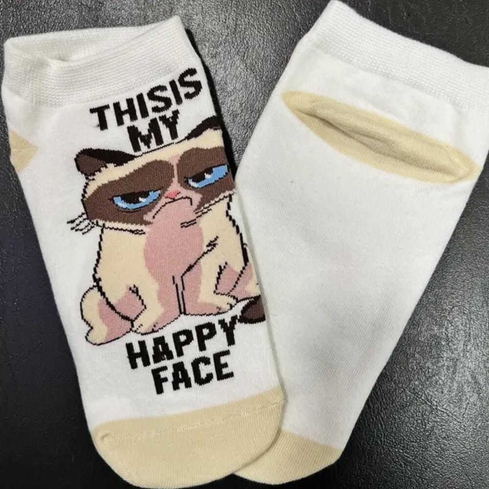 Keres olyan zoknit, ami feldobja a hangulatát még a legborúsabb napokon is? Ezek a vidám zoknik mérges macskás mintával és a találó „This is my happy face” felirattal pontosan azok, amire szüksége van!