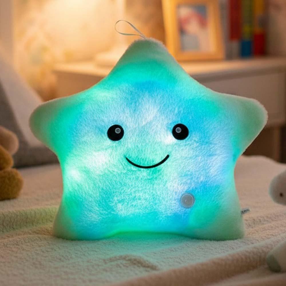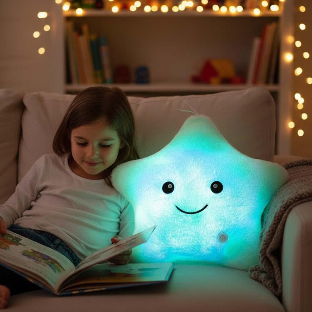 A gyerekek azonnal megszeretik a csillag alakú aranyos párnát. Gond nélkül elalhatnak vele, és kellemes anyagból készült. A legjobban azt fogják értékelni, hogy a párna világító. Bekapcsolásához csak helyezze be az elemeket, és nyomja meg a párnán lévő gombot.