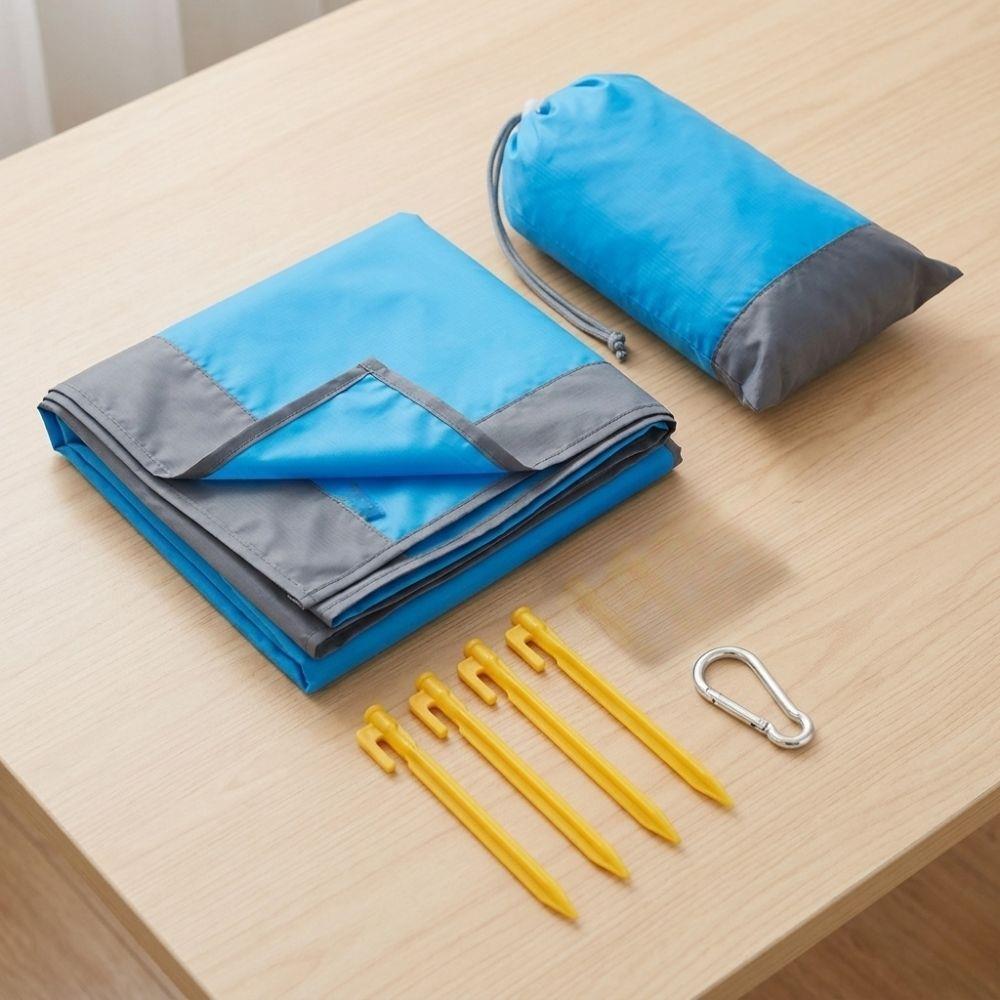 A szőnyeg könnyű, kompakt és praktikus zsákjának, valamint a karabinernek köszönhetően könnyen hordozható. A csomag része négy rögzítő cövek is, amelyekkel stabilan a földhöz erősíthető. Használat után egyszerűen tisztítható, így minden nyári kaland praktikus kísérője lesz.