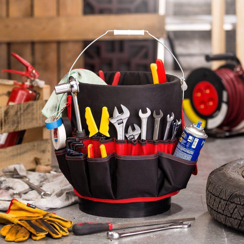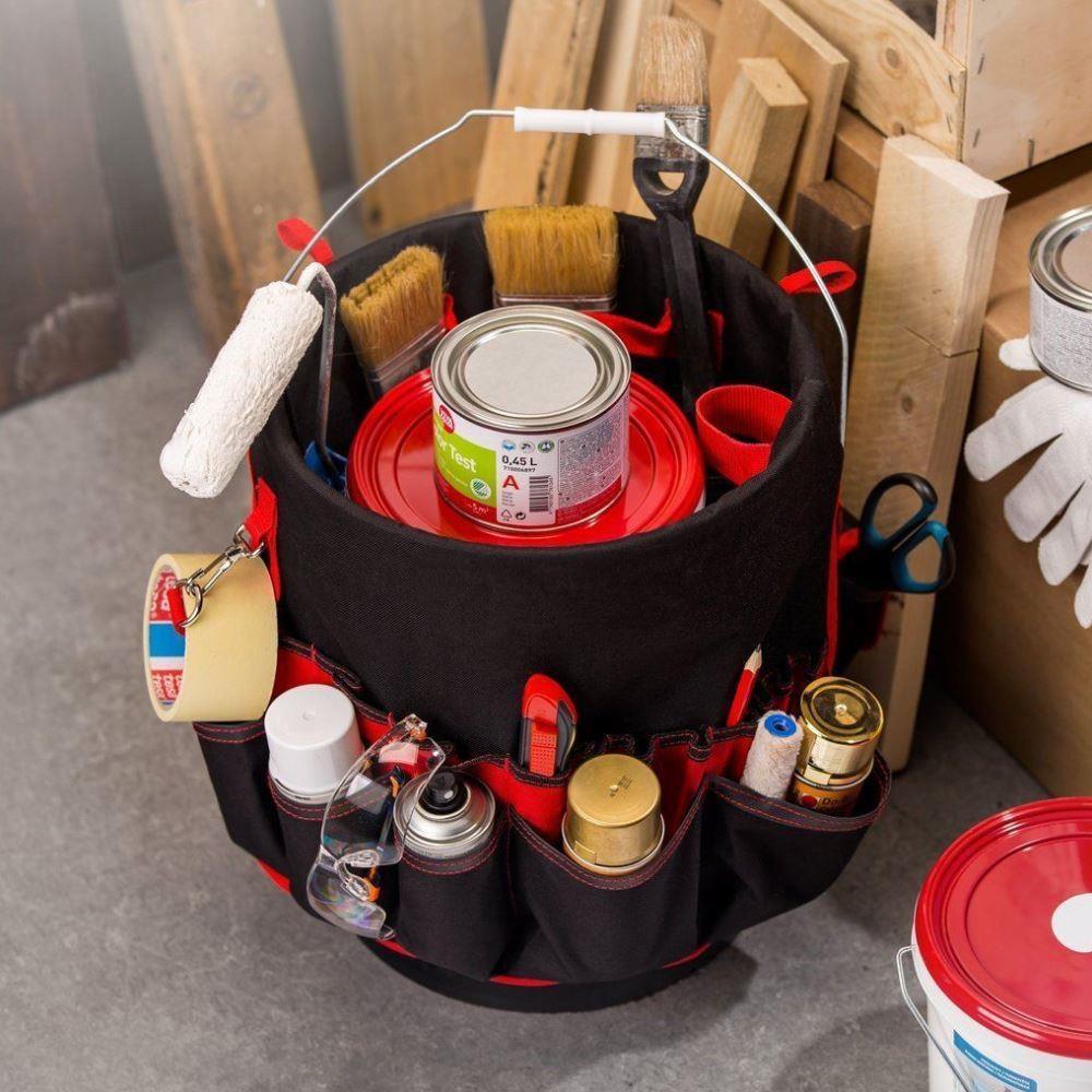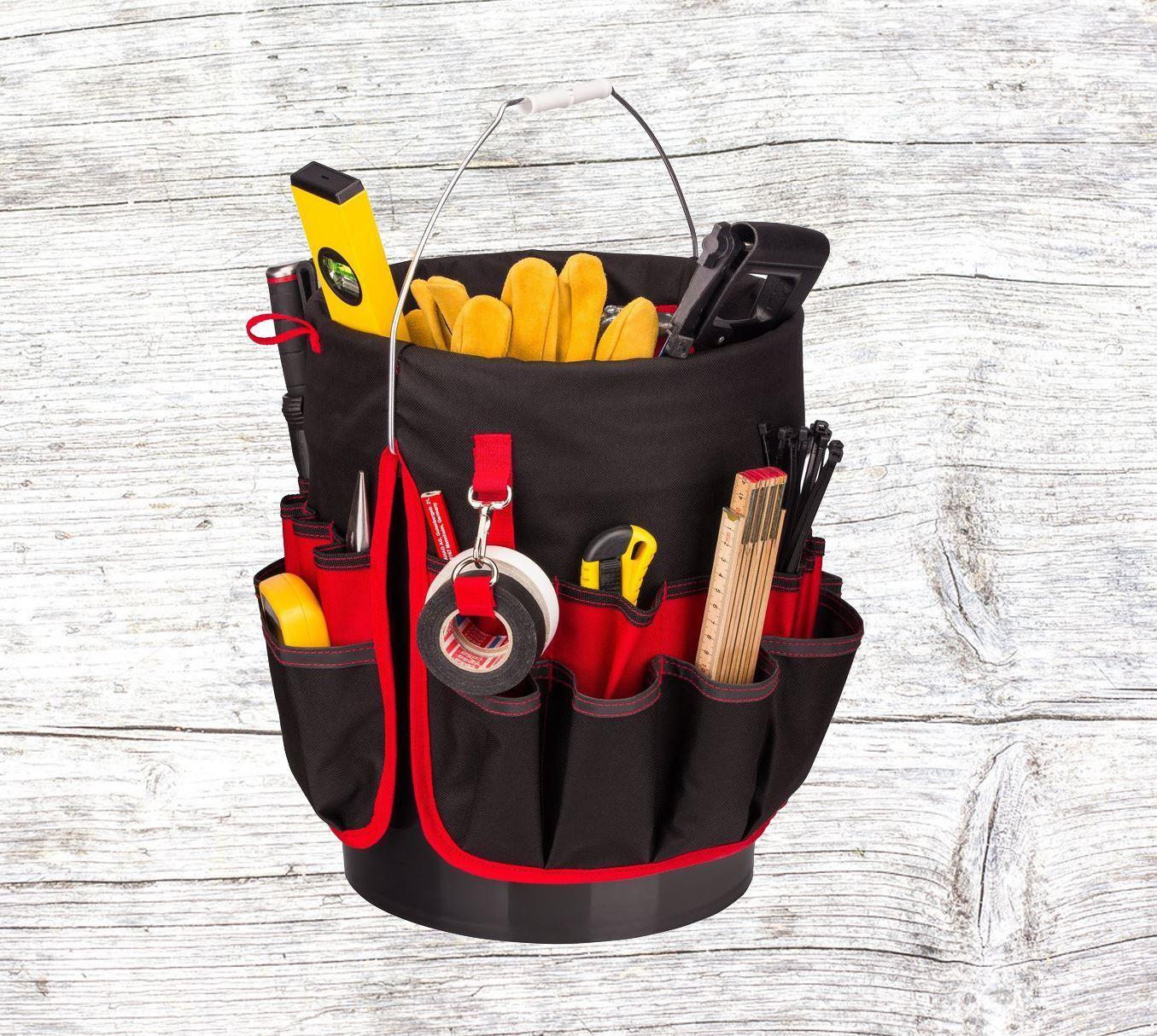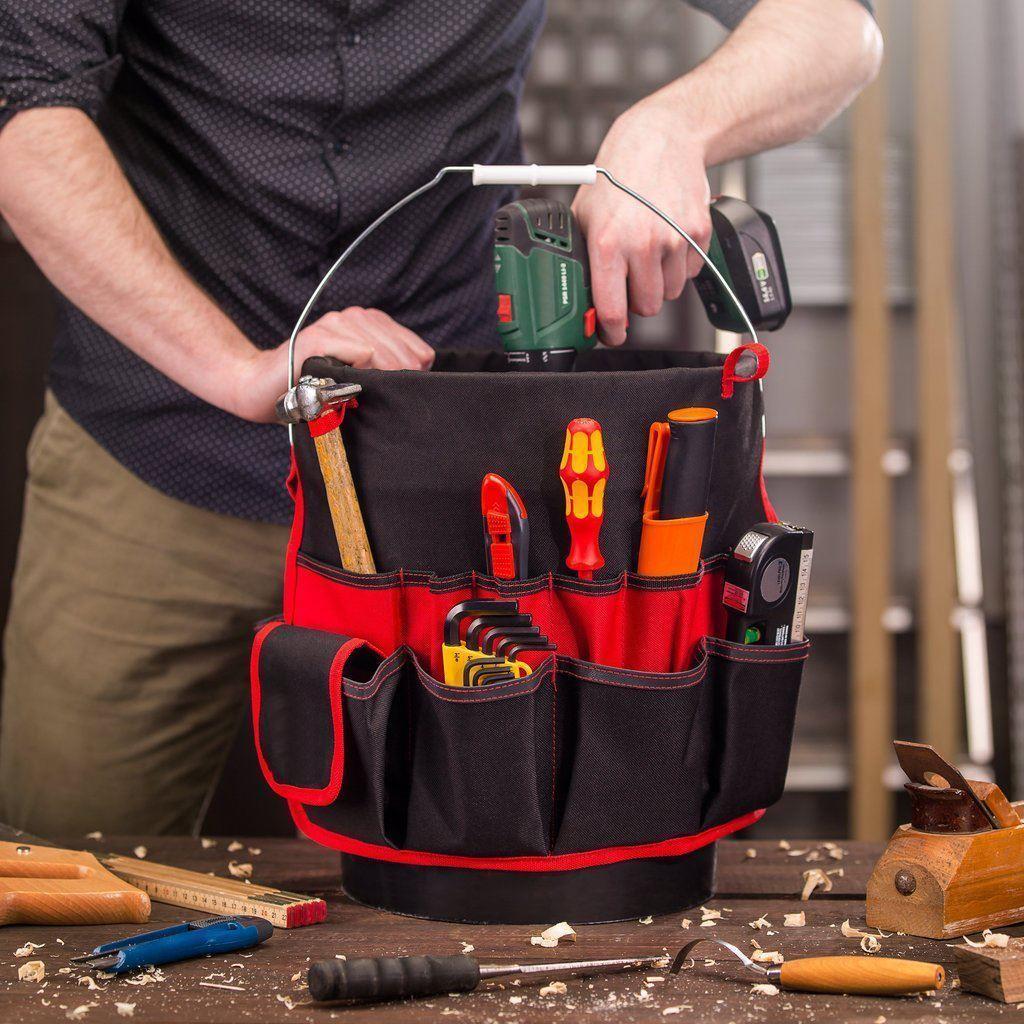 A vödrös szerszámszervezőnek köszönhetően minden szerszámot áttekinthetően, pont úgy rendszerezhet, ahogy Önnek szüksége van. A szerszámszervező kör alakú, ezért kényelmesen ráhelyezhető egy hagyományos vödörre. A szerszámokat számos praktikus zsebben és rekeszben tárolhatja, amelyek a teljes kerület mentén találhatók. A szerszámszervezővel az munka igazi öröm lesz.