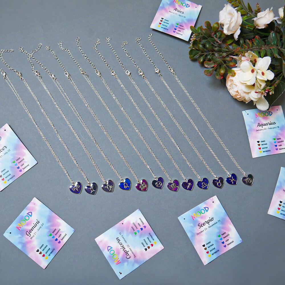 Az érzelmeket mutató, csillagjegyes nyaklánc egyedi ékszer, amely ötvözi a szépséget a személyes jelentéssel. A medál a testhőmérséklet szerint változtatja színét, így tükrözi az Ön aktuális hangulatát. A láncon megjelenő színek különböző érzelmeket jelképeznek, a nyugalomtól egészen a lelkesedésig, így ez az ékszer igazán egyedivé válik.