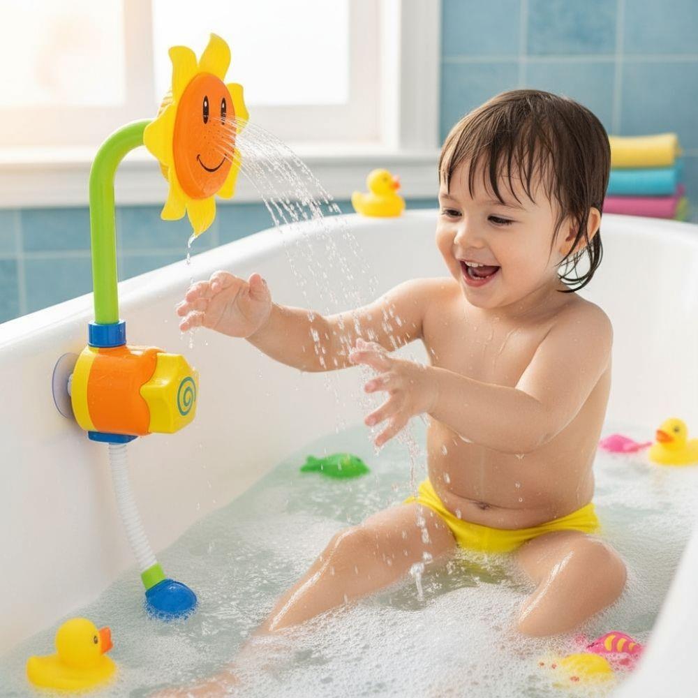 >A színes, napraforgó formájú zuhany a lányok és fiúk tetszését is elnyeri. A gyerekek sok szórakozást találnak a napraforgóval, nemcsak a mindennapi fürdés során a kádban, hanem a nyári hónapokban is a medencében való mókázás közben. A zuhany mechanikus elven működik, amelynél a gomb megnyomása után vizet szív fel és elkezdi permetezni.